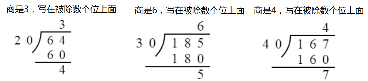 1. 说出各题的商是几,应该写在什么位置,并做一做。