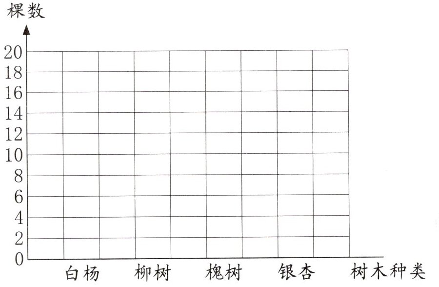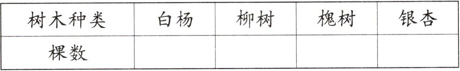 白杨:20 棵 柳树:16 棵 槐树:8 棵 银杏:12 棵