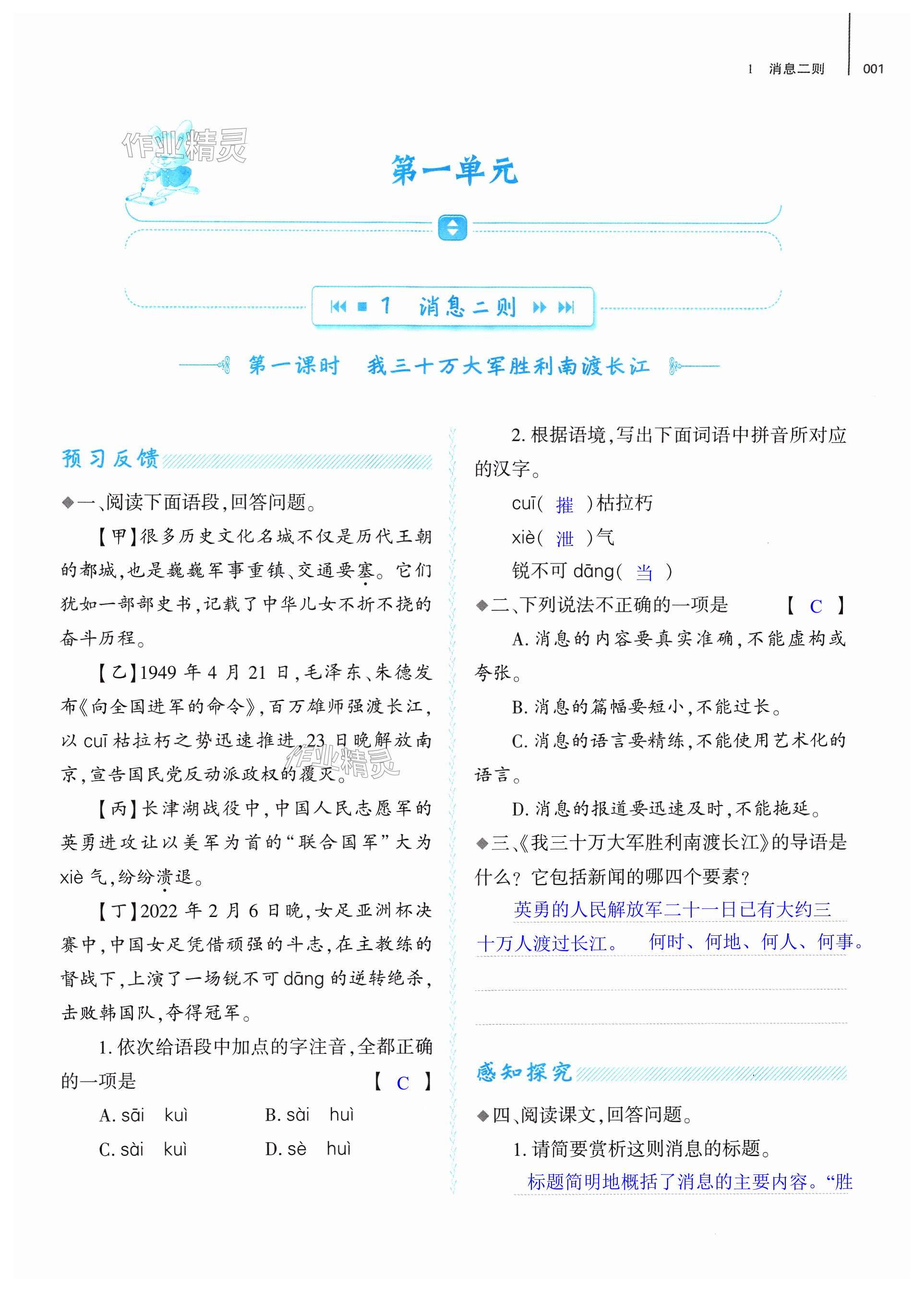 注:目前有些书本章节名称可能整理的还不是很完善,但都是按照顺序排列的,请同学们按照顺序仔细查找。练习册 2024年基础训练大象出版社八年级语文上册人教版 答案主要是用来给同学们做完题方便对答案用的,请勿直接抄袭。