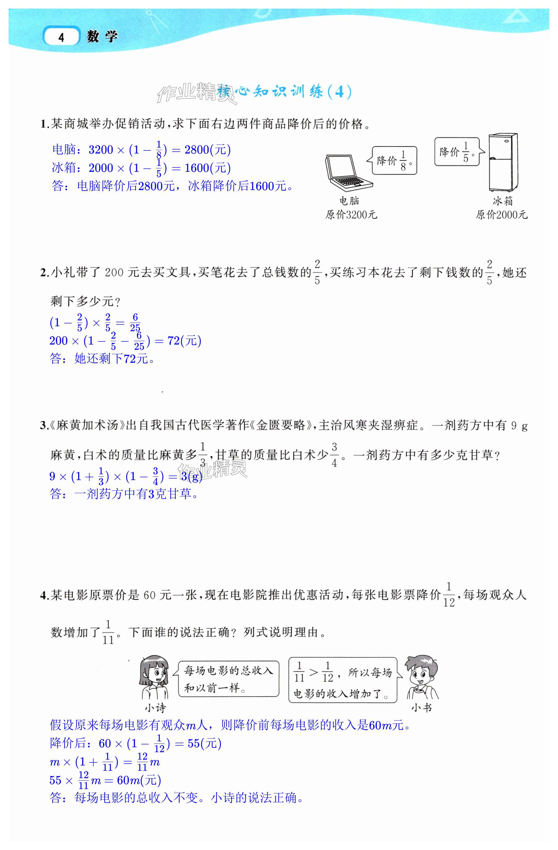 注:目前有些书本章节名称可能整理的还不是很完善,但都是按照顺序排列的,请同学们按照顺序仔细查找。练习册 2024年名师面对面先学后练六年级数学上册人教版浙江专版 答案主要是用来给同学们做完题方便对答案用的,请勿直接抄袭。