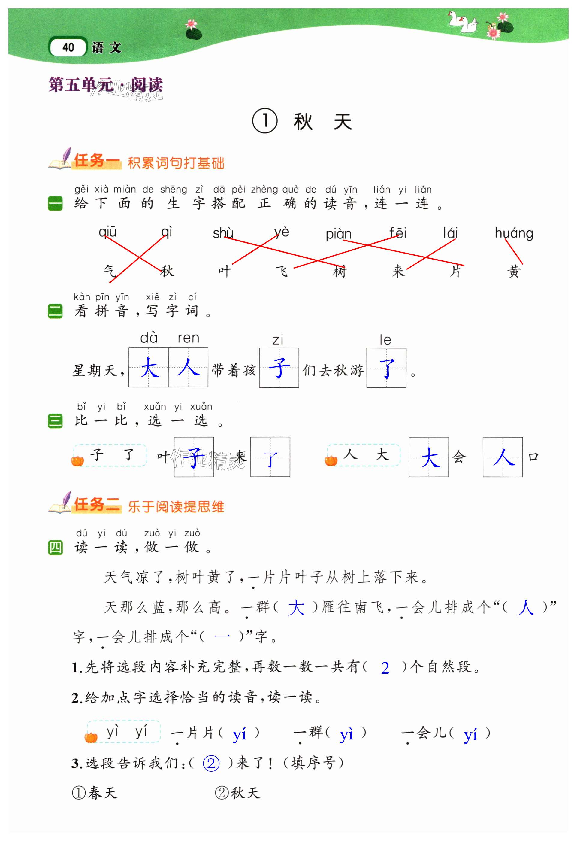 注:目前有些书本章节名称可能整理的还不是很完善,但都是按照顺序排列的,请同学们按照顺序仔细查找。练习册 2024年名师面对面先学后练一年级语文上册人教版浙江专版 答案主要是用来给同学们做完题方便对答案用的,请勿直接抄袭。