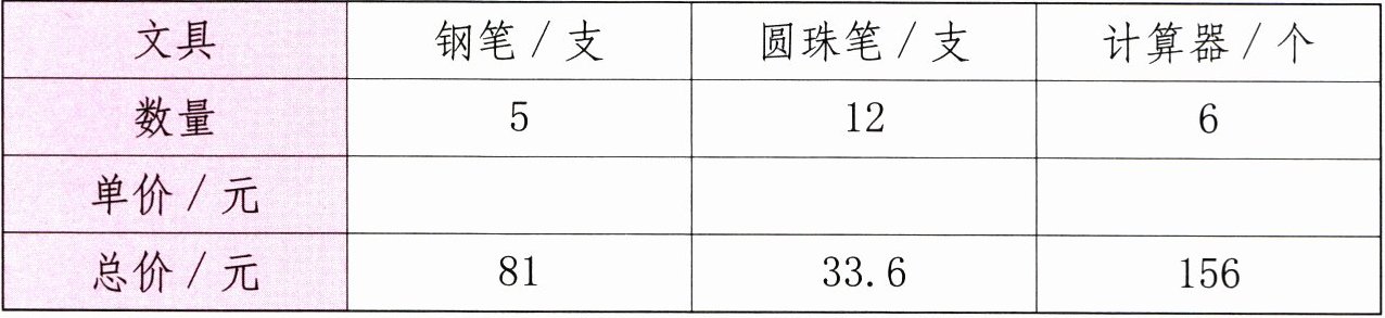 |文具|钢笔/支|圆珠笔/支|计算器/个|
