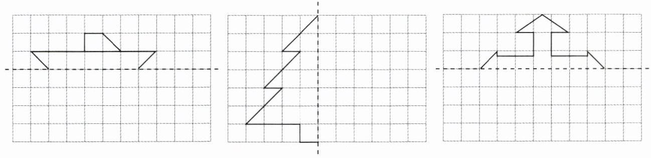 3. 在方格纸上画出轴对称图形的另一半,这些图形分别像什么?