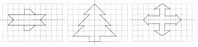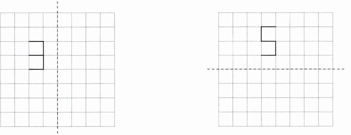 2. 以虚线为对称轴,在方格纸上画出下面图形的轴对称图形。