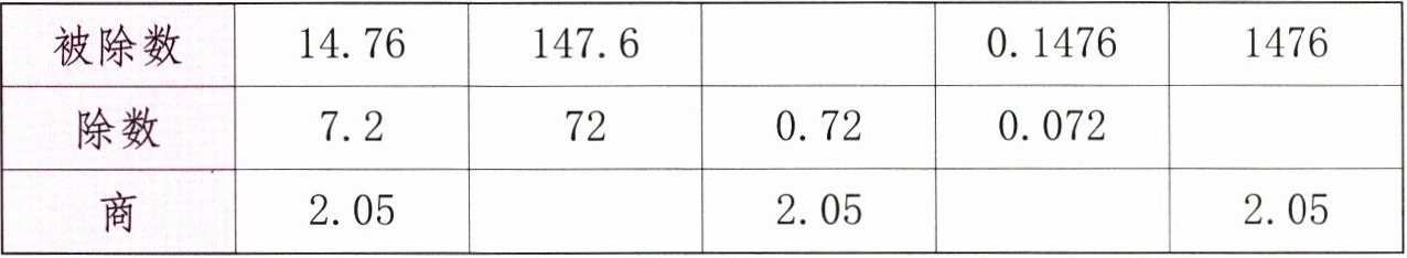 |被除数|14.76|147.6|1.476|0.1476|1476|