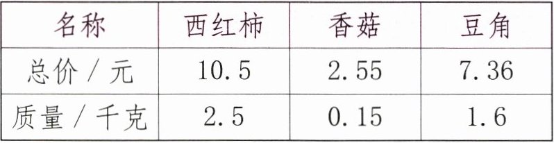 西红柿单价:10.5÷2.5=4.2(元/千克)