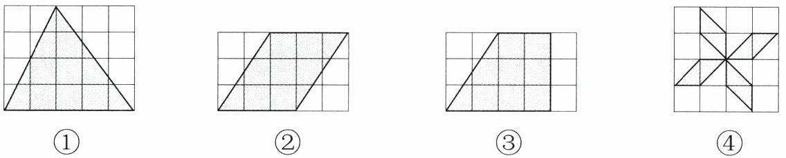 第一个图形的面积:长方形的面积是$6× 2=12$,两个三角形的面积均为$2× 2÷ 2=2$,