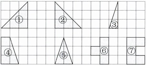 2. 下面的图形中,哪两个能拼成长方形? 哪两个能拼成正方形?