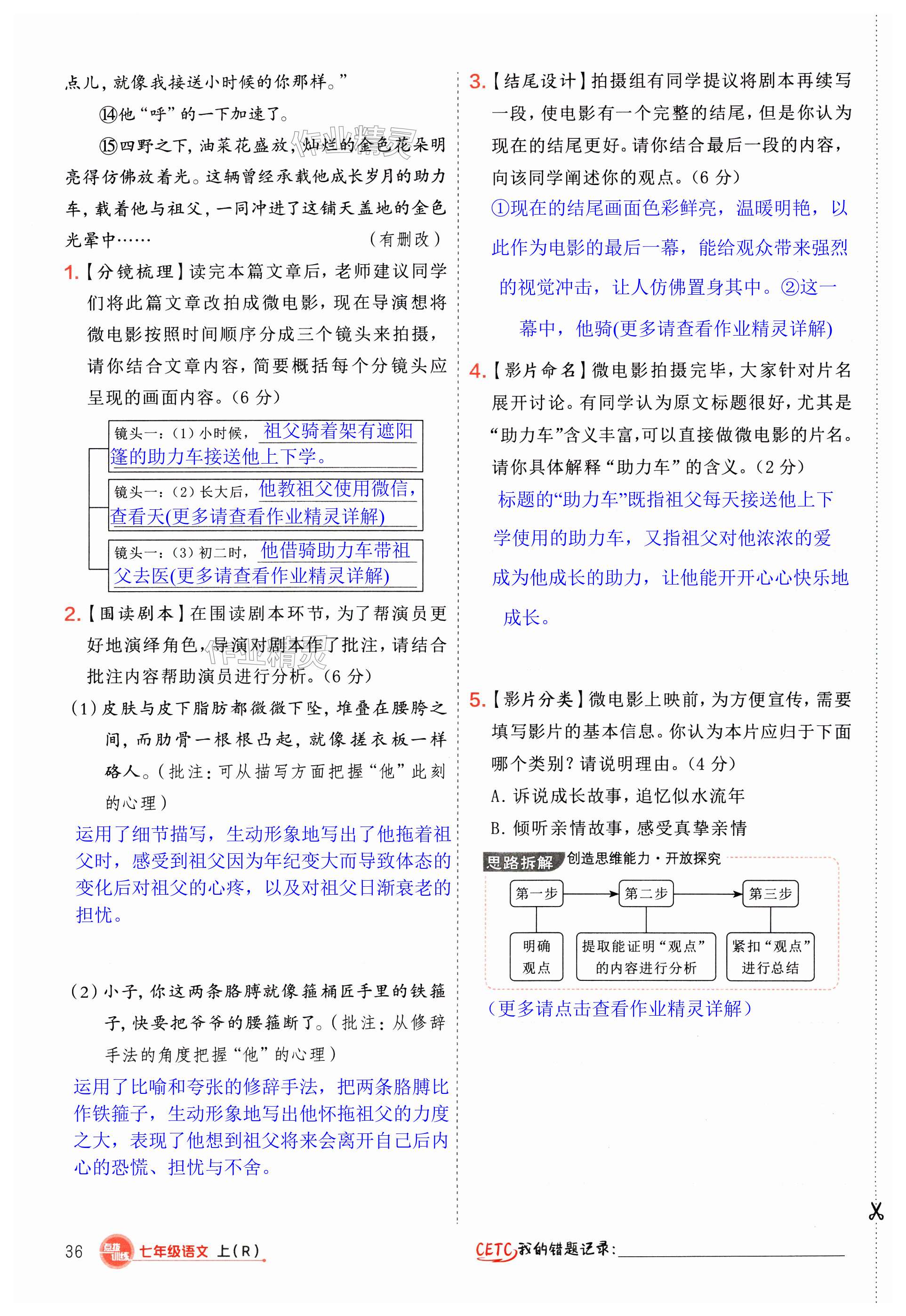 注:目前有些书本章节名称可能整理的还不是很完善,但都是按照顺序排列的,请同学们按照顺序仔细查找。练习册 2024年点拨训练七年级语文上册人教版 答案主要是用来给同学们做完题方便对答案用的,请勿直接抄袭。