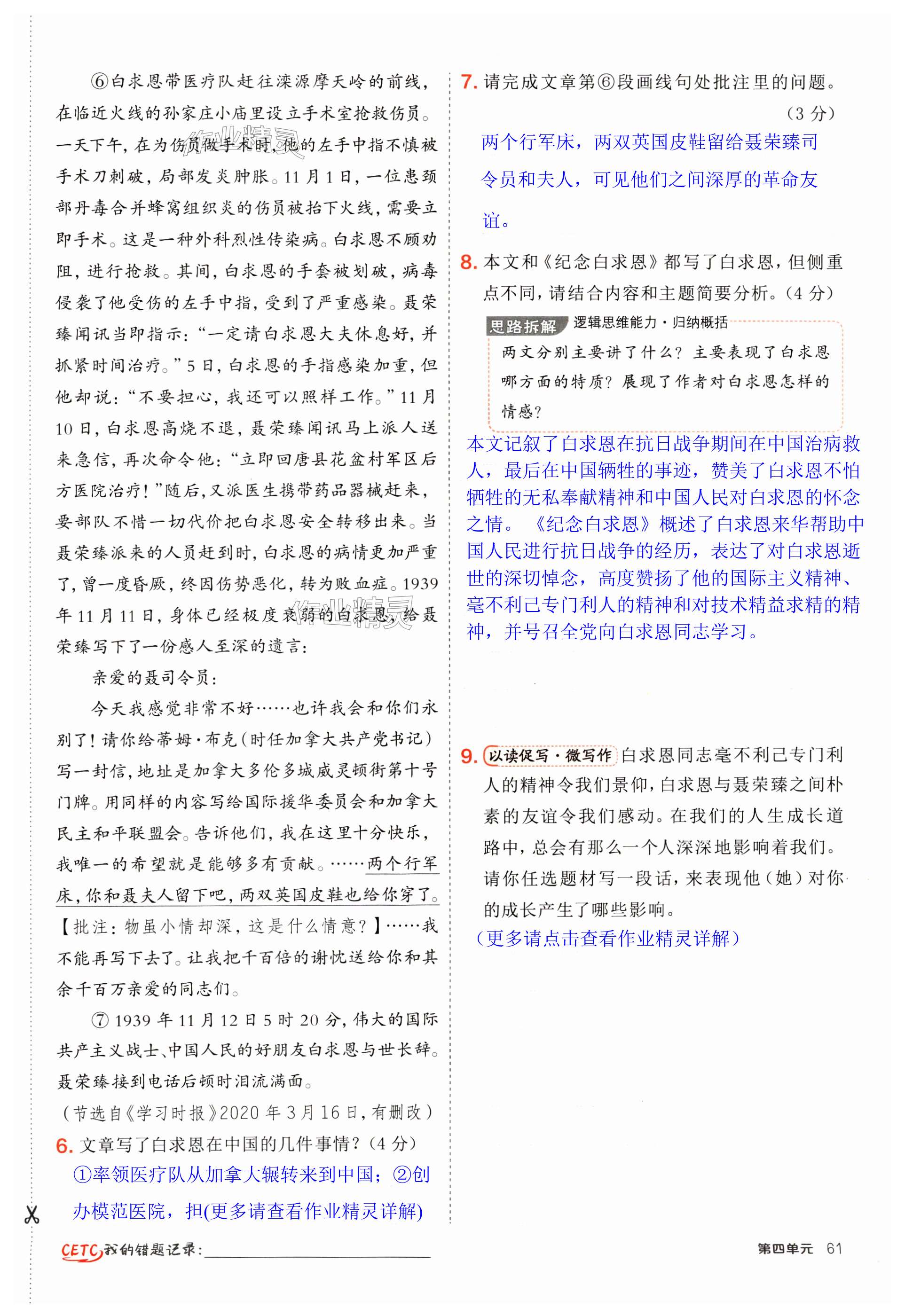 注:目前有些书本章节名称可能整理的还不是很完善,但都是按照顺序排列的,请同学们按照顺序仔细查找。练习册 2024年点拨训练七年级语文上册人教版 答案主要是用来给同学们做完题方便对答案用的,请勿直接抄袭。