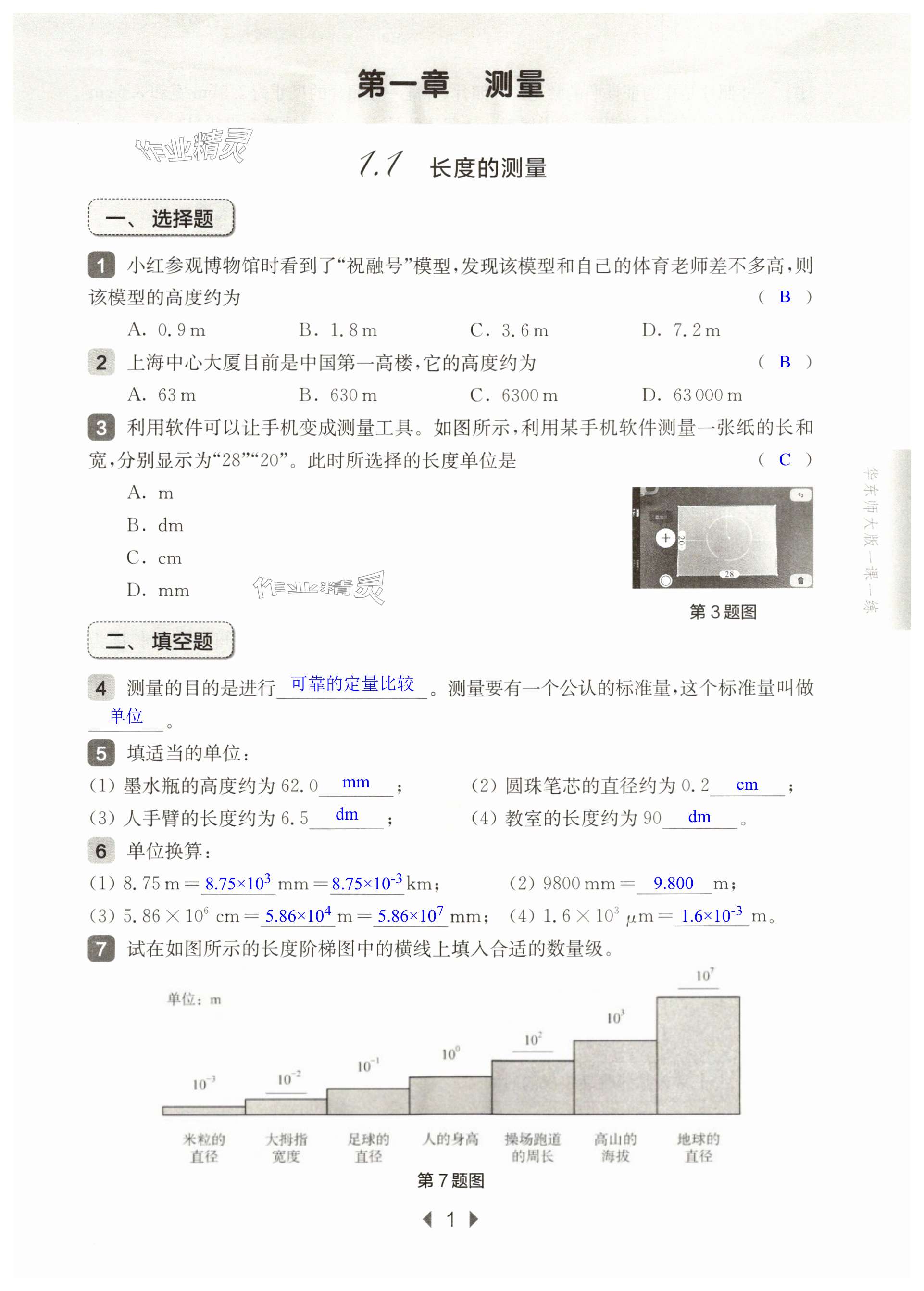注:目前有些书本章节名称可能整理的还不是很完善,但都是按照顺序排列的,请同学们按照顺序仔细查找。练习册 2024年华东师大版一课一练八年级物理上册沪教版五四制 答案主要是用来给同学们做完题方便对答案用的,请勿直接抄袭。