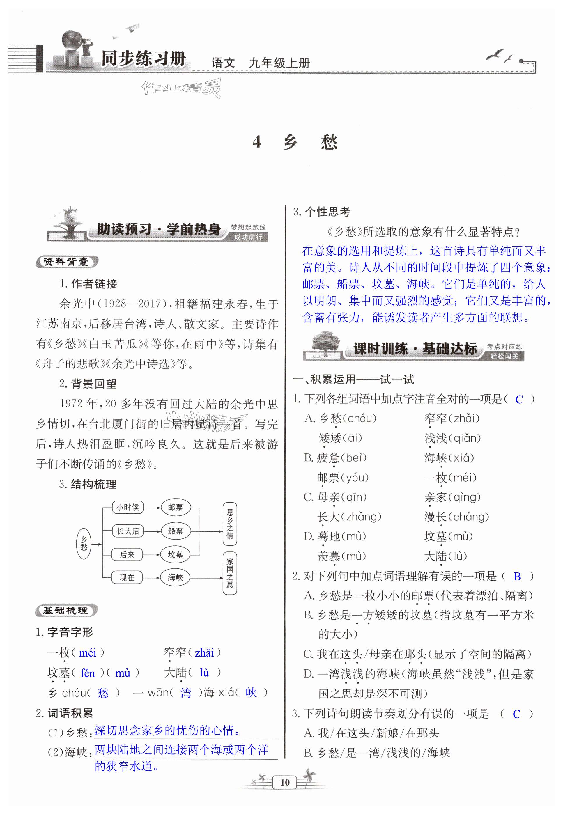注:目前有些书本章节名称可能整理的还不是很完善,但都是按照顺序排列的,请同学们按照顺序仔细查找。练习册 2024年同步练习册九年级语文上册人教版人民教育出版社 答案主要是用来给同学们做完题方便对答案用的,请勿直接抄袭。