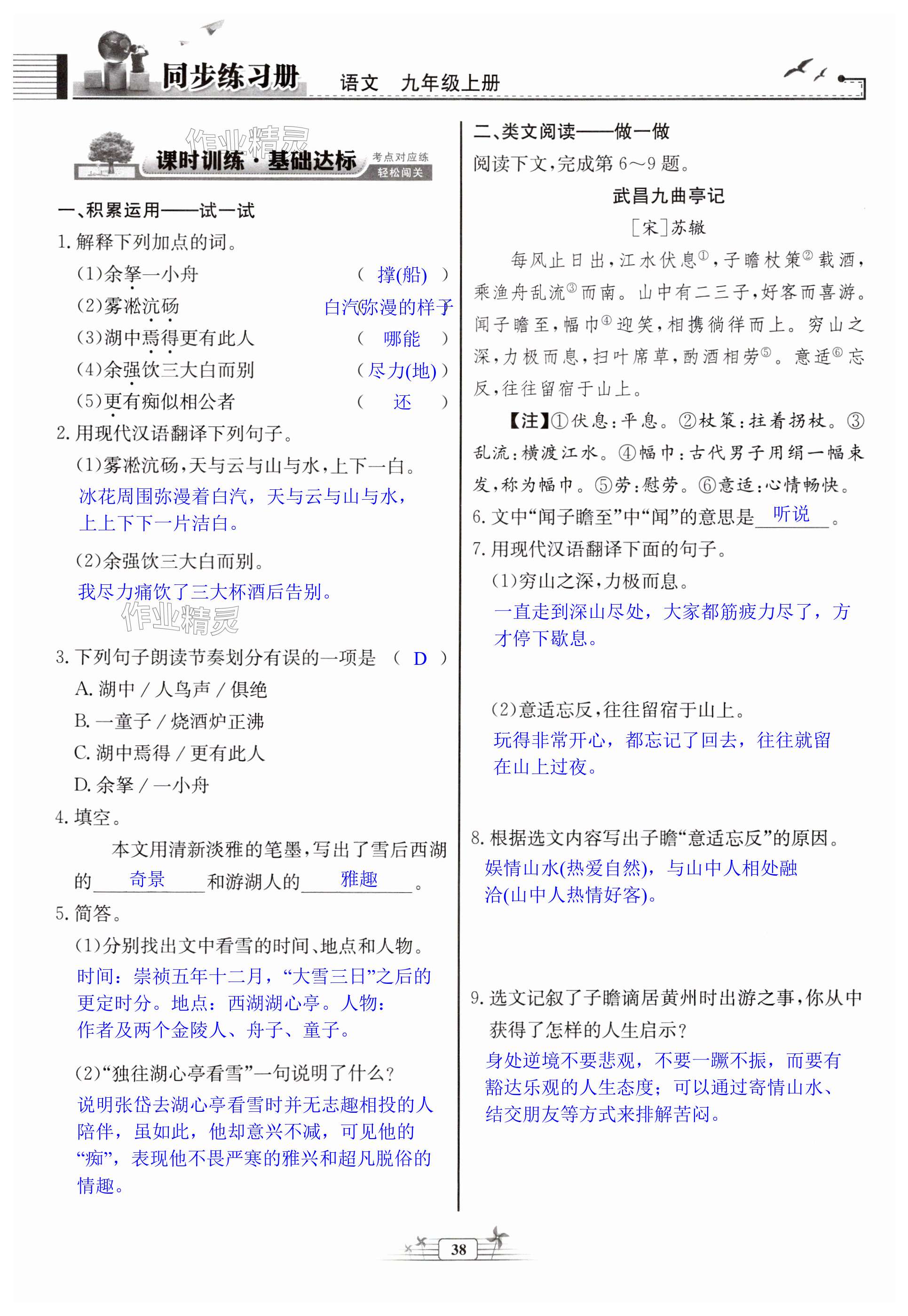 注:目前有些书本章节名称可能整理的还不是很完善,但都是按照顺序排列的,请同学们按照顺序仔细查找。练习册 2024年同步练习册九年级语文上册人教版人民教育出版社 答案主要是用来给同学们做完题方便对答案用的,请勿直接抄袭。