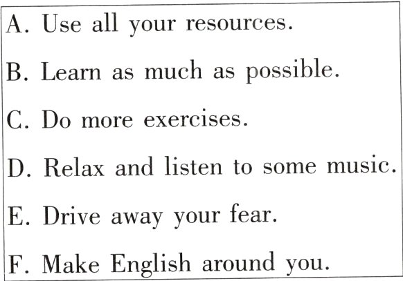 __4__ You can't only learn the grammar or vocabulary. You should learn to express your meanings correctly and write in English. You can also learn the culture about the English language.