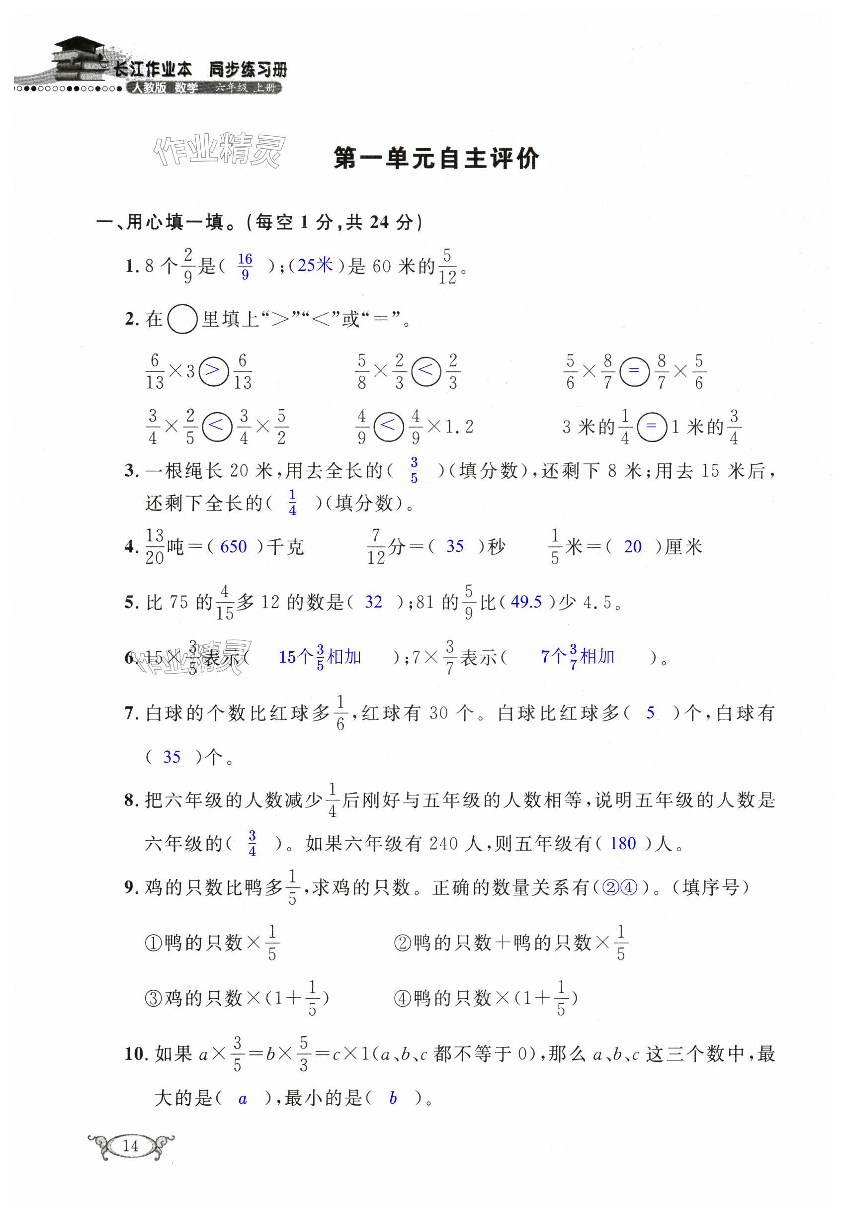 注:目前有些书本章节名称可能整理的还不是很完善,但都是按照顺序排列的,请同学们按照顺序仔细查找。练习册 2024年长江作业本同步练习册六年级数学上册人教版 答案主要是用来给同学们做完题方便对答案用的,请勿直接抄袭。