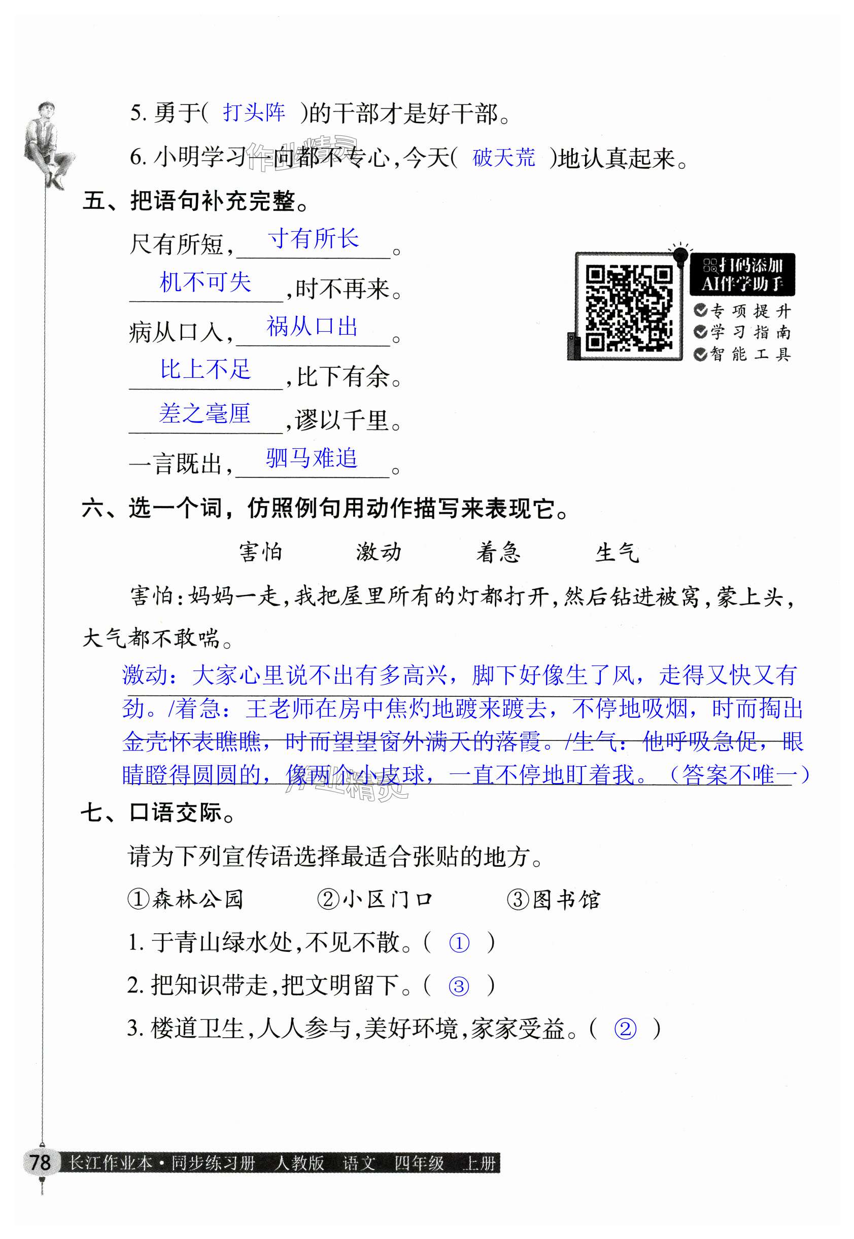 注:目前有些书本章节名称可能整理的还不是很完善,但都是按照顺序排列的,请同学们按照顺序仔细查找。练习册 2024年长江作业本同步练习册四年级语文上册人教版 答案主要是用来给同学们做完题方便对答案用的,请勿直接抄袭。