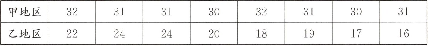答:甲地区这8天正午的平均气温是31摄氏度,乙地区是20摄氏度。