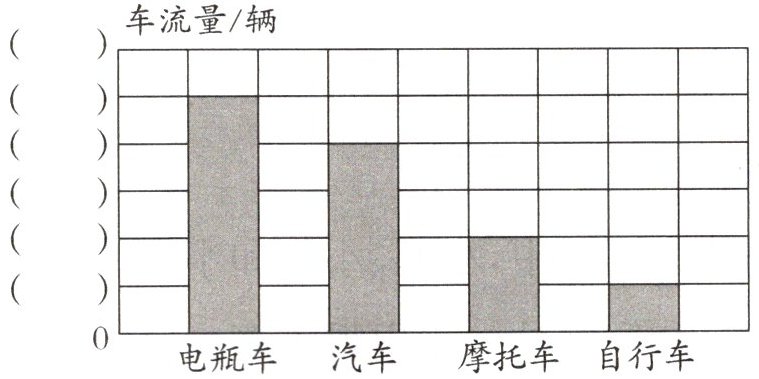 如图是学校门口15分钟车流量的统计图,已知电瓶车比摩托车多15辆,请完成统计图。