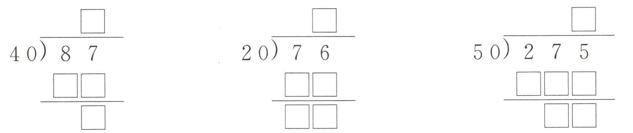 $\begin{array}{r} \Box \\ 40\enclose{longdiv} {87}\\ \Box\Box\\ \hline \Box\end{array}\\ \Box\Box\\ \hline \Box $