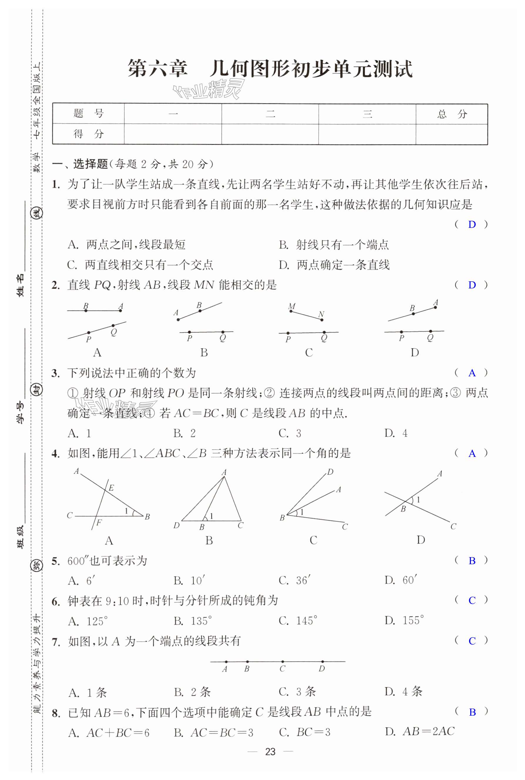 注:目前有些书本章节名称可能整理的还不是很完善,但都是按照顺序排列的,请同学们按照顺序仔细查找。练习册 2024年能力素养与学力提升七年级数学上册人教版 答案主要是用来给同学们做完题方便对答案用的,请勿直接抄袭。