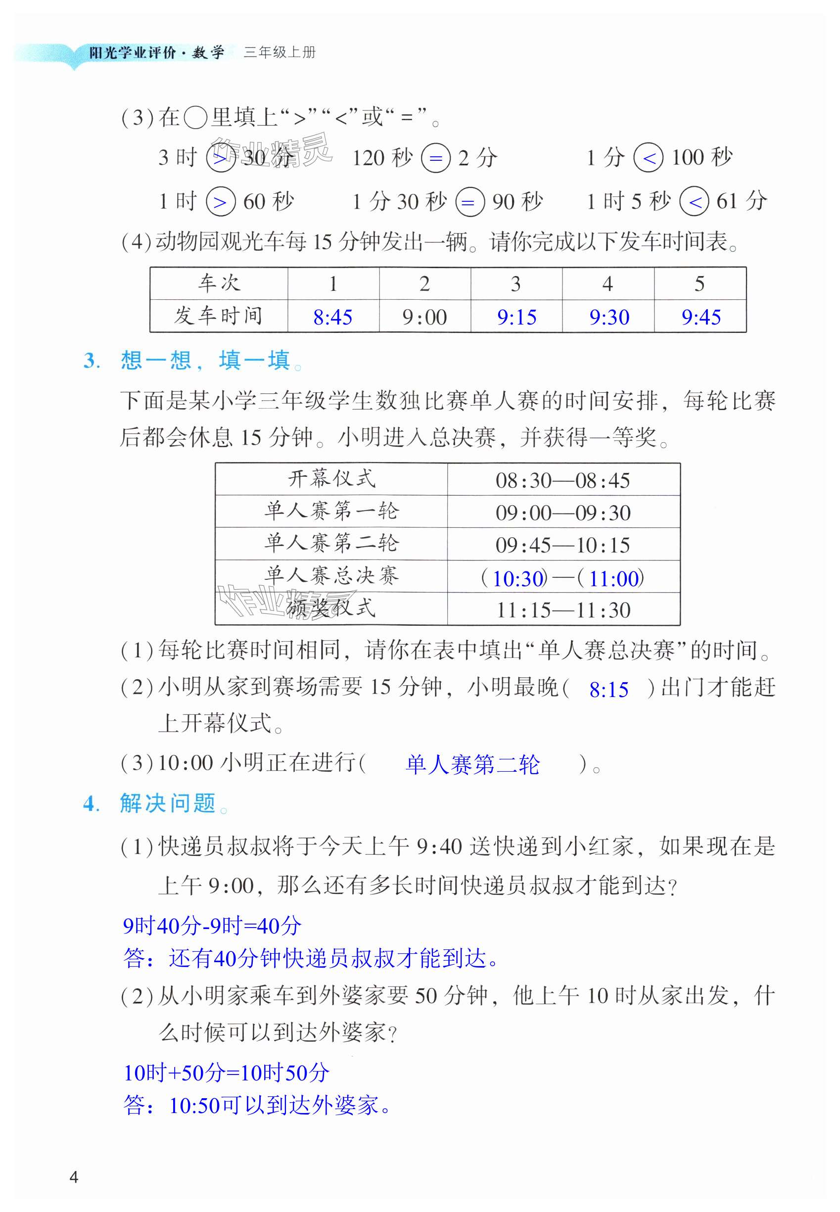 注:目前有些书本章节名称可能整理的还不是很完善,但都是按照顺序排列的,请同学们按照顺序仔细查找。练习册 2024年阳光学业评价三年级数学上册人教版 答案主要是用来给同学们做完题方便对答案用的,请勿直接抄袭。