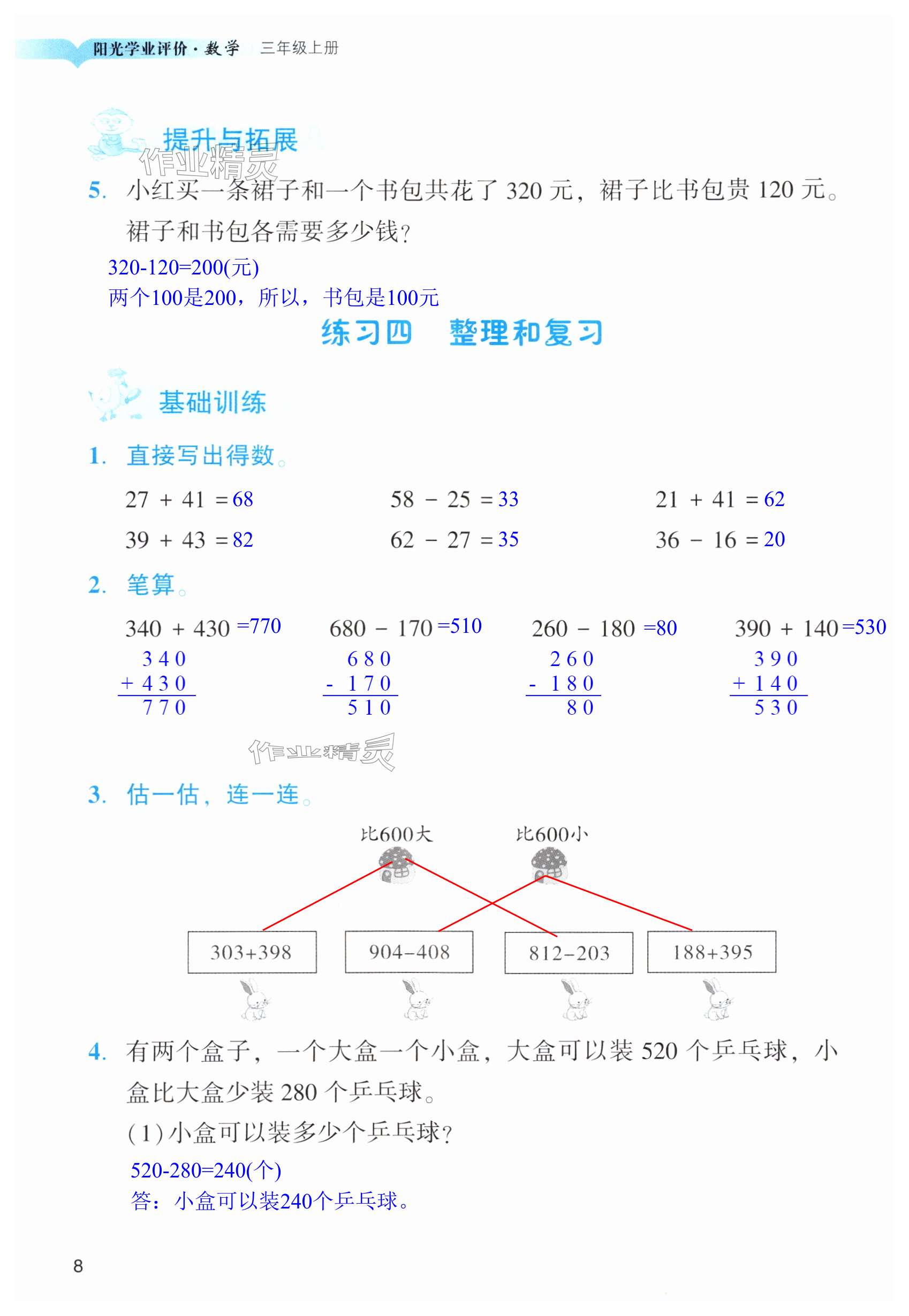 注:目前有些书本章节名称可能整理的还不是很完善,但都是按照顺序排列的,请同学们按照顺序仔细查找。练习册 2024年阳光学业评价三年级数学上册人教版 答案主要是用来给同学们做完题方便对答案用的,请勿直接抄袭。