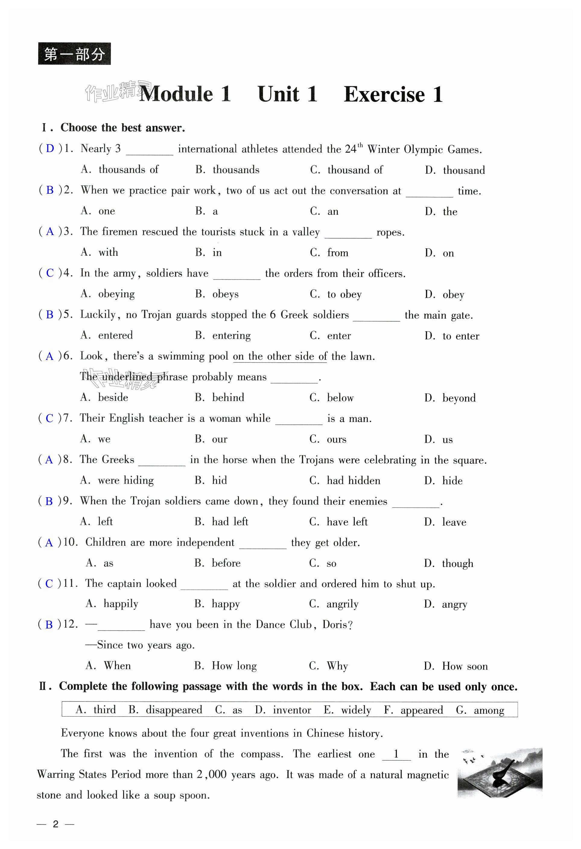 注:目前有些书本章节名称可能整理的还不是很完善,但都是按照顺序排列的,请同学们按照顺序仔细查找。练习册 2024年中学生世界九年级英语全一册沪教版54制 答案主要是用来给同学们做完题方便对答案用的,请勿直接抄袭。