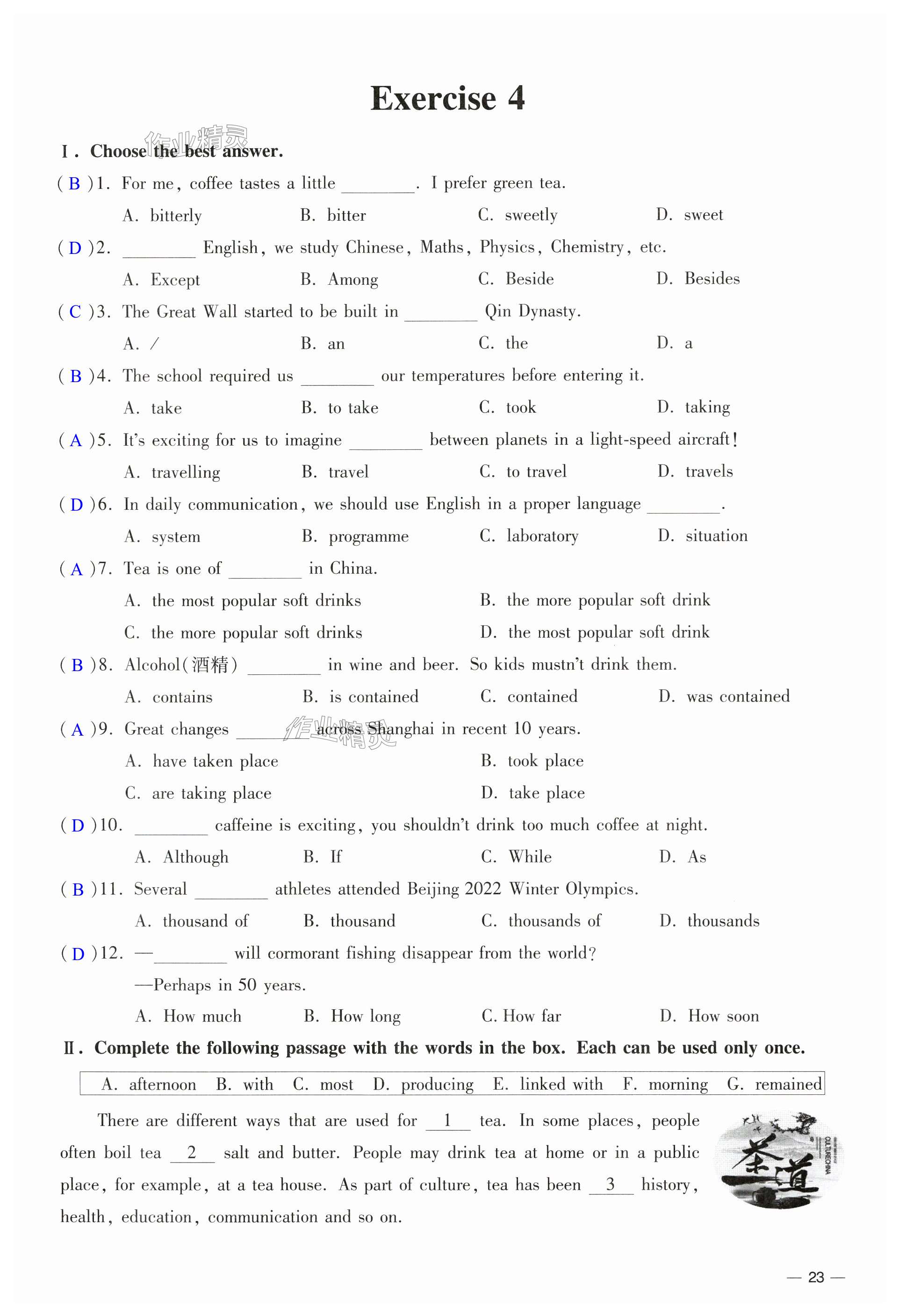 注:目前有些书本章节名称可能整理的还不是很完善,但都是按照顺序排列的,请同学们按照顺序仔细查找。练习册 2024年中学生世界九年级英语全一册沪教版54制 答案主要是用来给同学们做完题方便对答案用的,请勿直接抄袭。