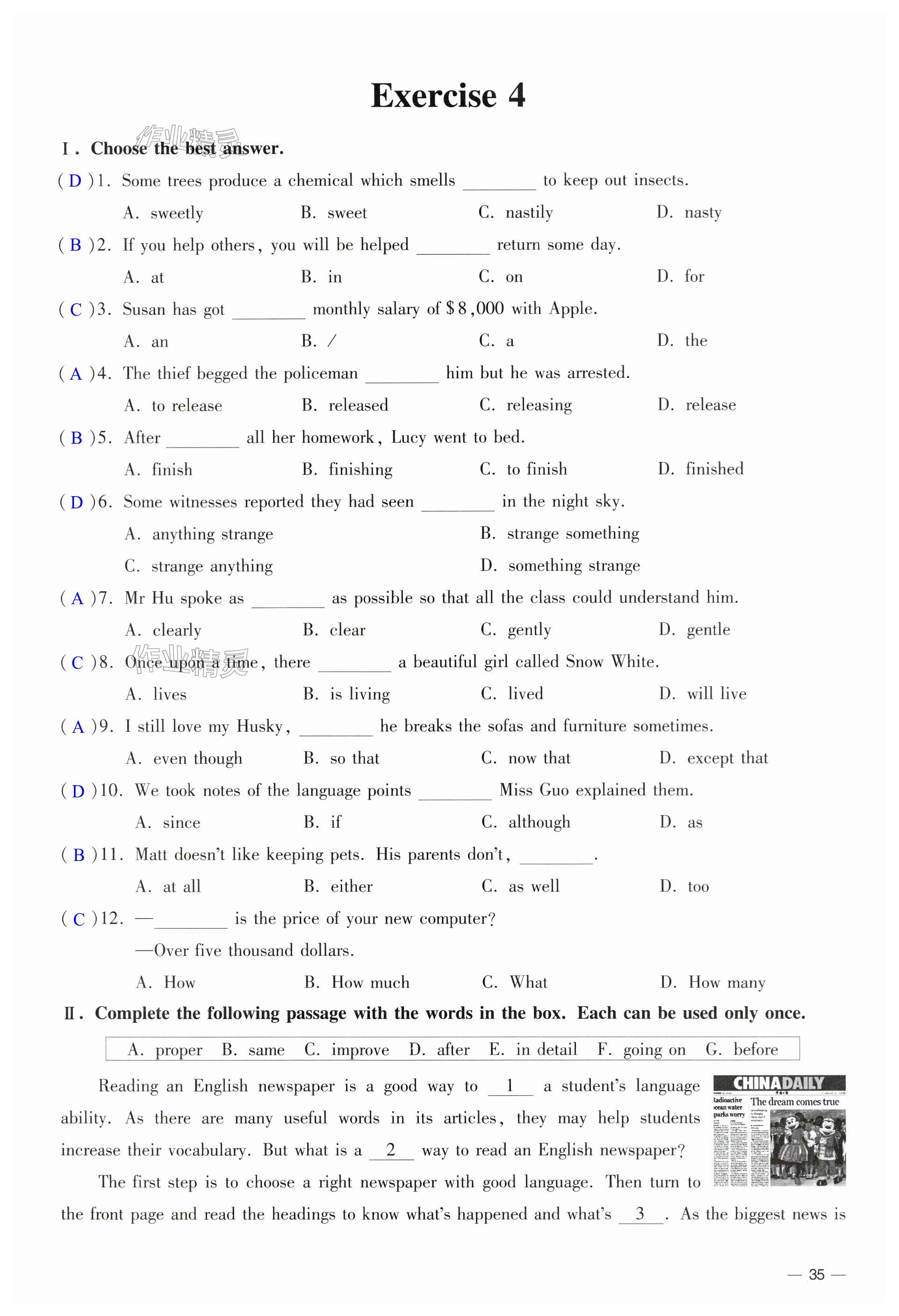 注:目前有些书本章节名称可能整理的还不是很完善,但都是按照顺序排列的,请同学们按照顺序仔细查找。练习册 2024年中学生世界九年级英语全一册沪教版54制 答案主要是用来给同学们做完题方便对答案用的,请勿直接抄袭。