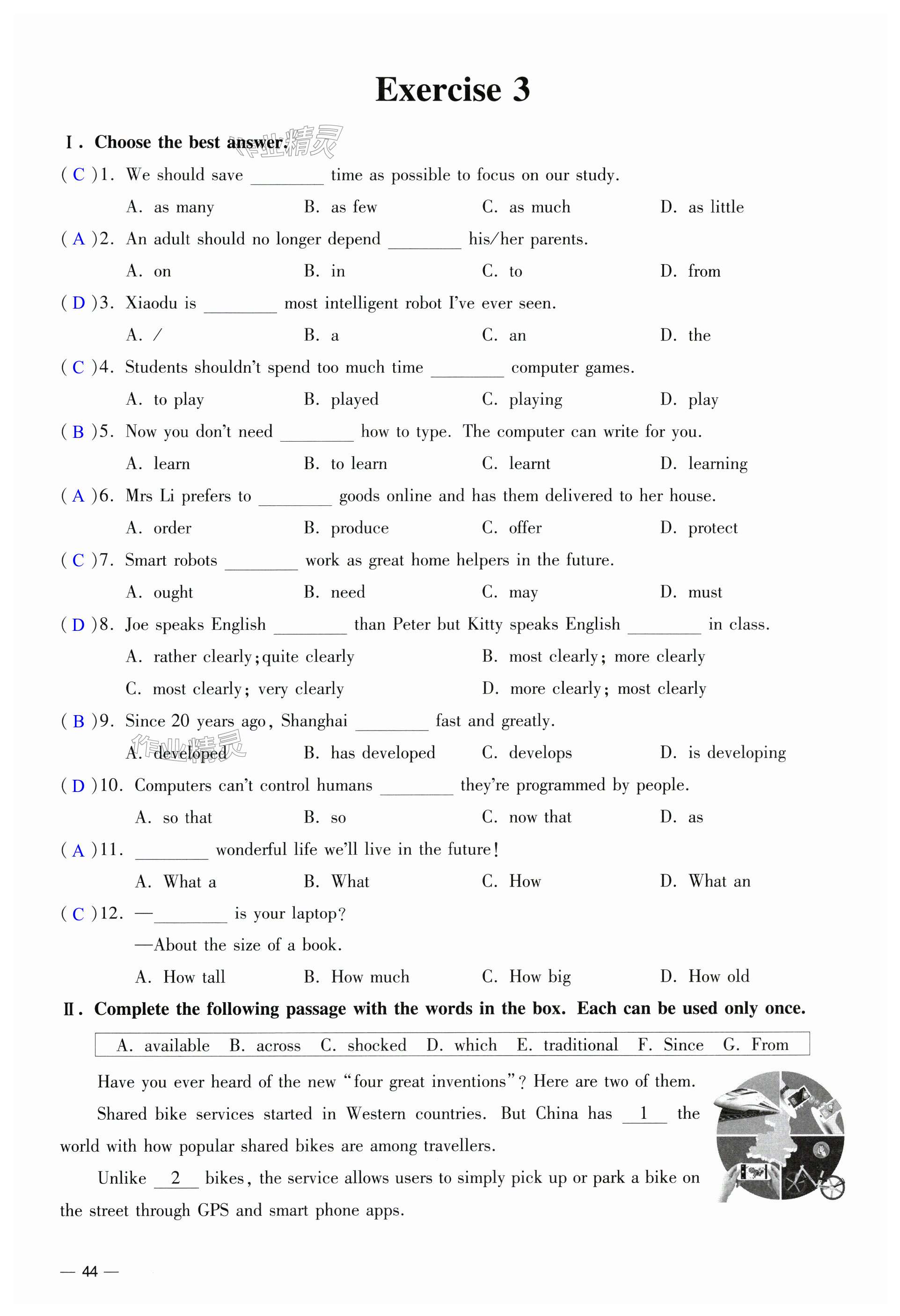 注:目前有些书本章节名称可能整理的还不是很完善,但都是按照顺序排列的,请同学们按照顺序仔细查找。练习册 2024年中学生世界九年级英语全一册沪教版54制 答案主要是用来给同学们做完题方便对答案用的,请勿直接抄袭。