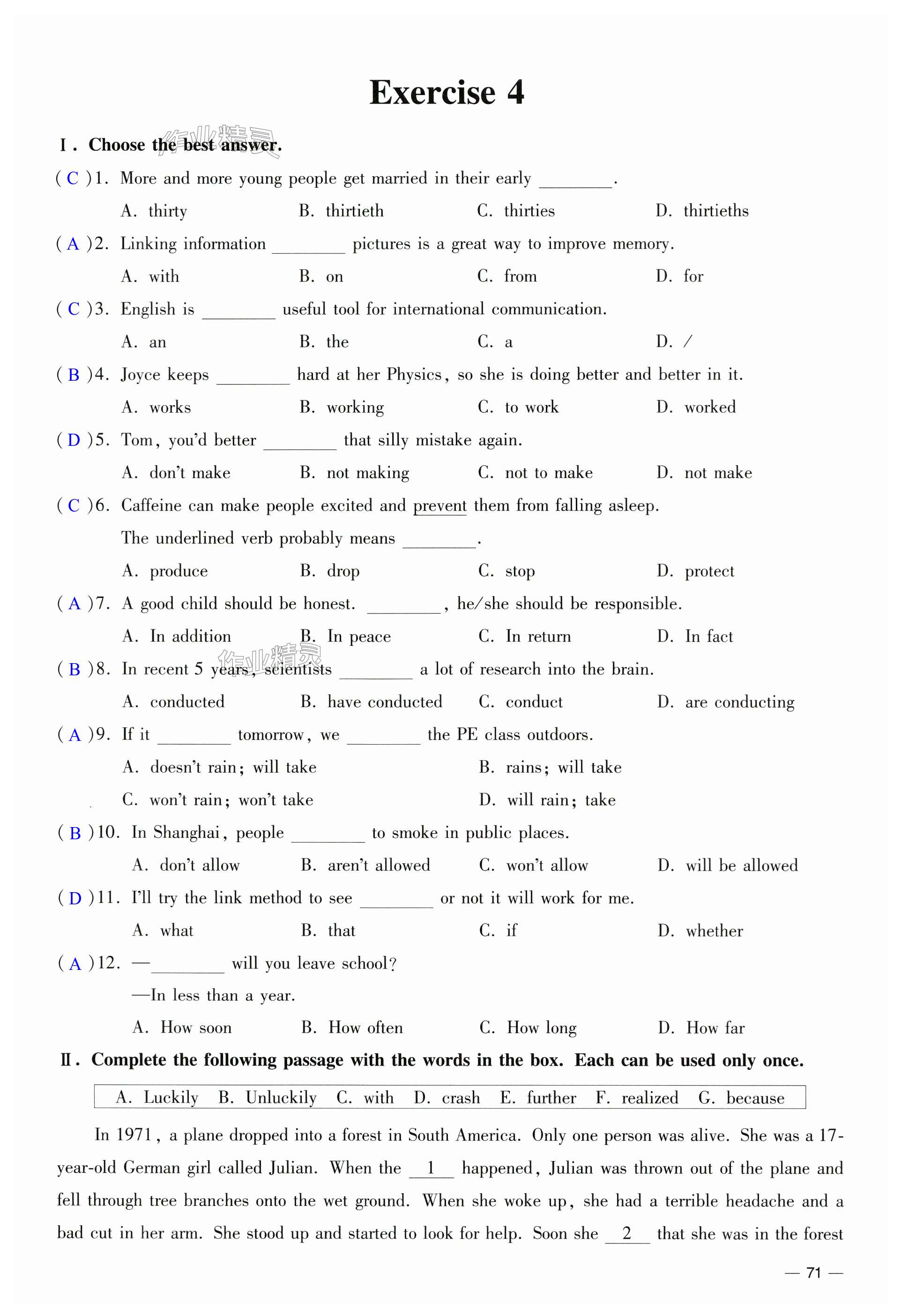 注:目前有些书本章节名称可能整理的还不是很完善,但都是按照顺序排列的,请同学们按照顺序仔细查找。练习册 2024年中学生世界九年级英语全一册沪教版54制 答案主要是用来给同学们做完题方便对答案用的,请勿直接抄袭。