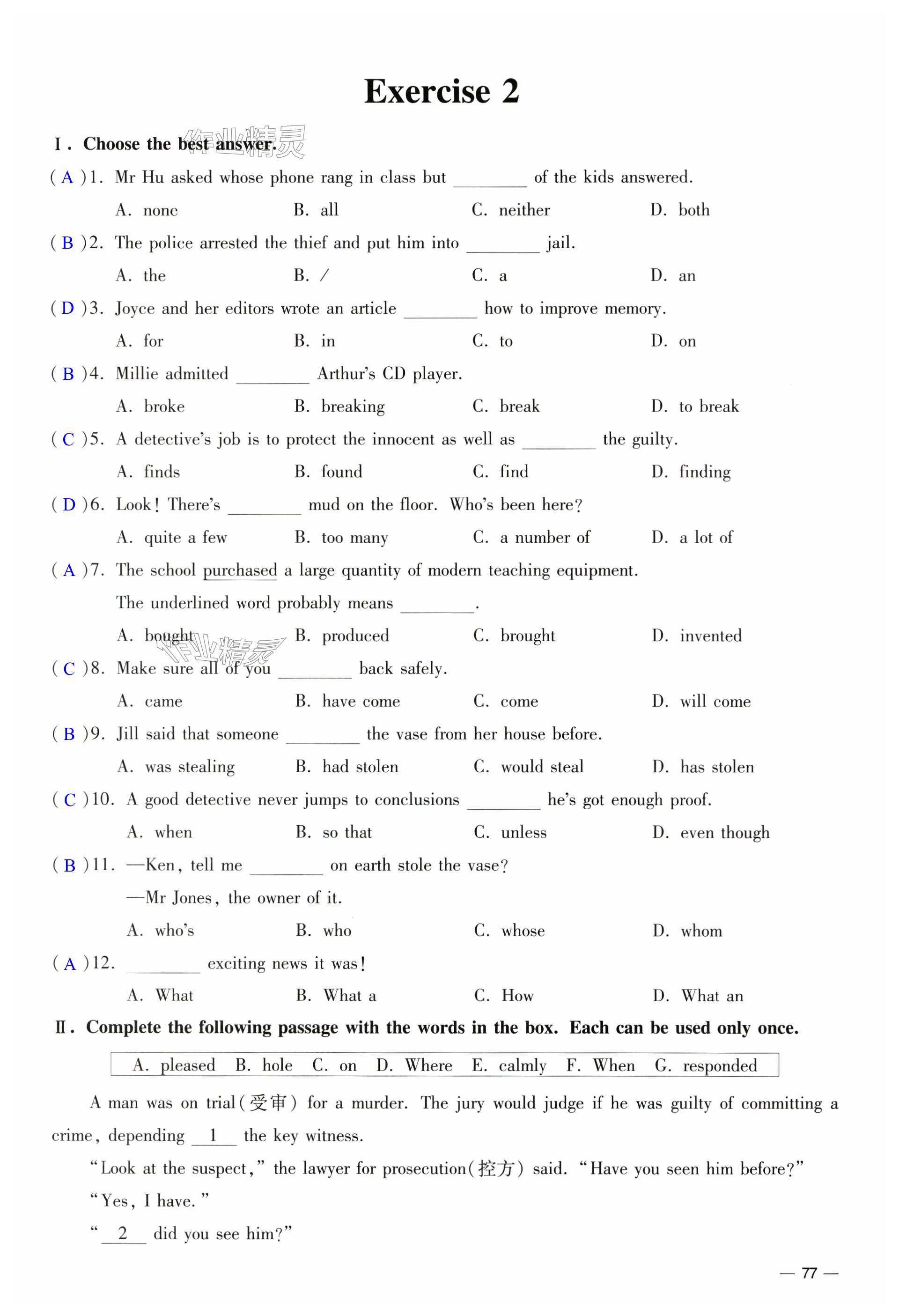 注:目前有些书本章节名称可能整理的还不是很完善,但都是按照顺序排列的,请同学们按照顺序仔细查找。练习册 2024年中学生世界九年级英语全一册沪教版54制 答案主要是用来给同学们做完题方便对答案用的,请勿直接抄袭。