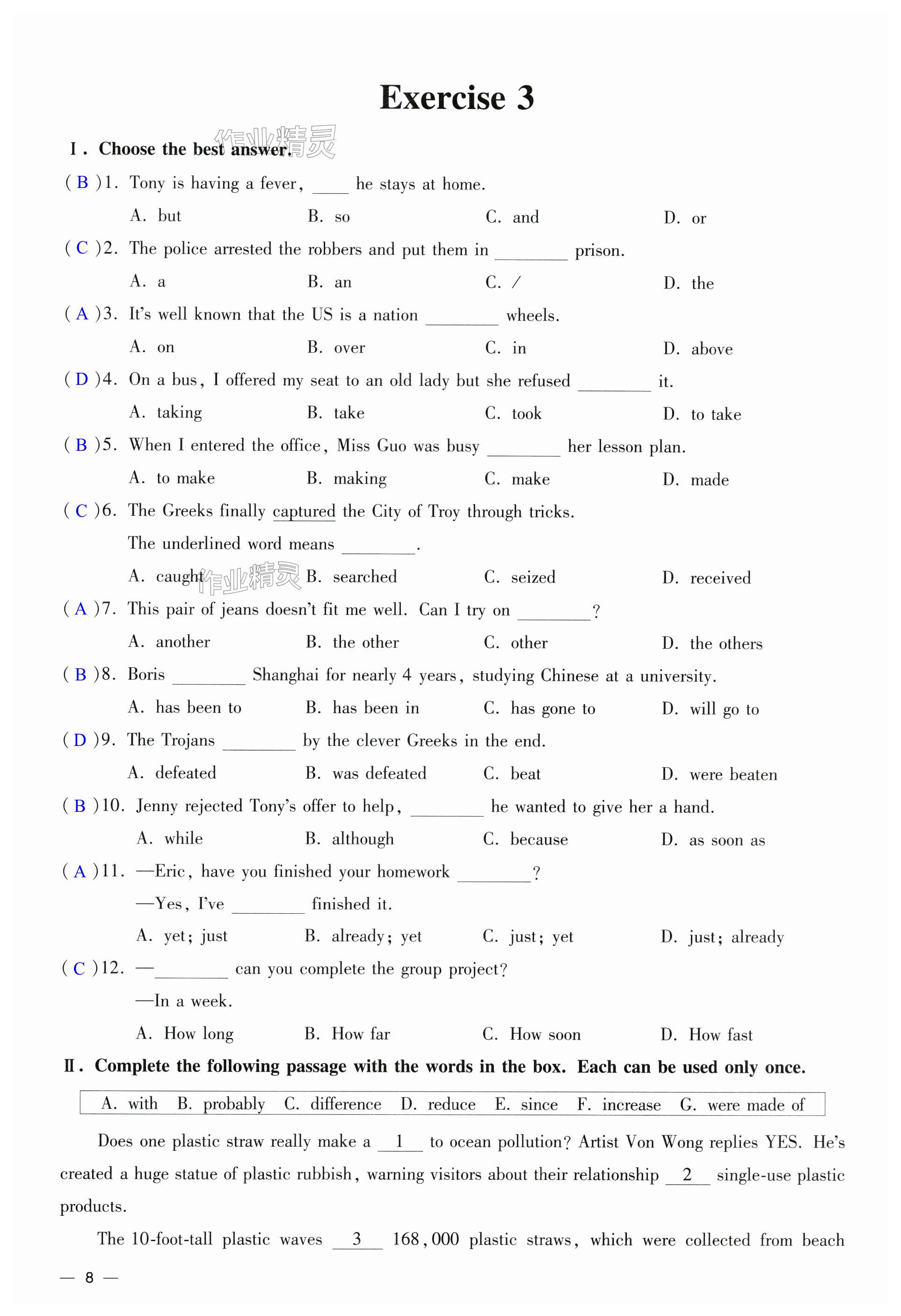注:目前有些书本章节名称可能整理的还不是很完善,但都是按照顺序排列的,请同学们按照顺序仔细查找。练习册 2024年中学生世界九年级英语全一册沪教版54制 答案主要是用来给同学们做完题方便对答案用的,请勿直接抄袭。