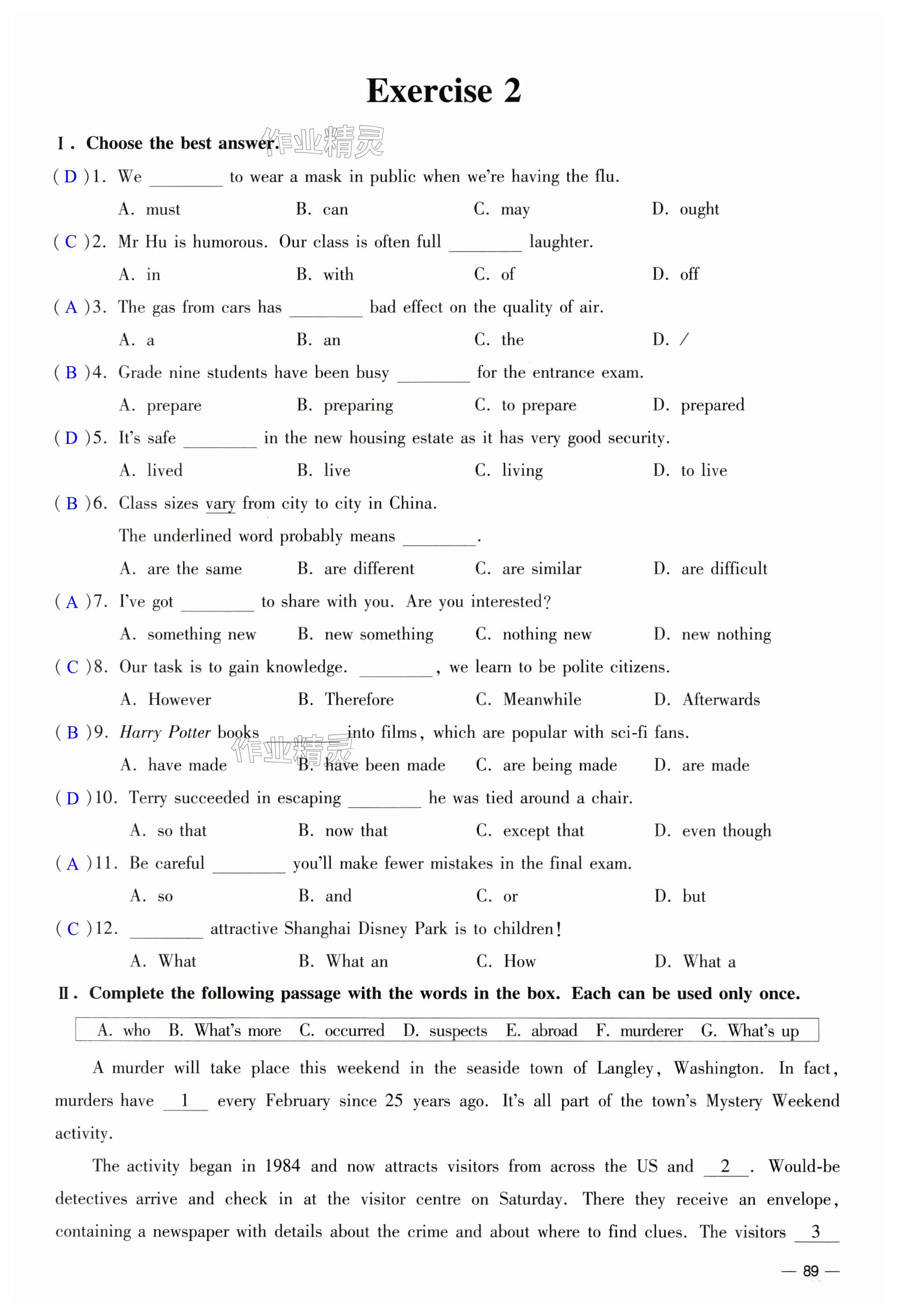 注:目前有些书本章节名称可能整理的还不是很完善,但都是按照顺序排列的,请同学们按照顺序仔细查找。练习册 2024年中学生世界九年级英语全一册沪教版54制 答案主要是用来给同学们做完题方便对答案用的,请勿直接抄袭。