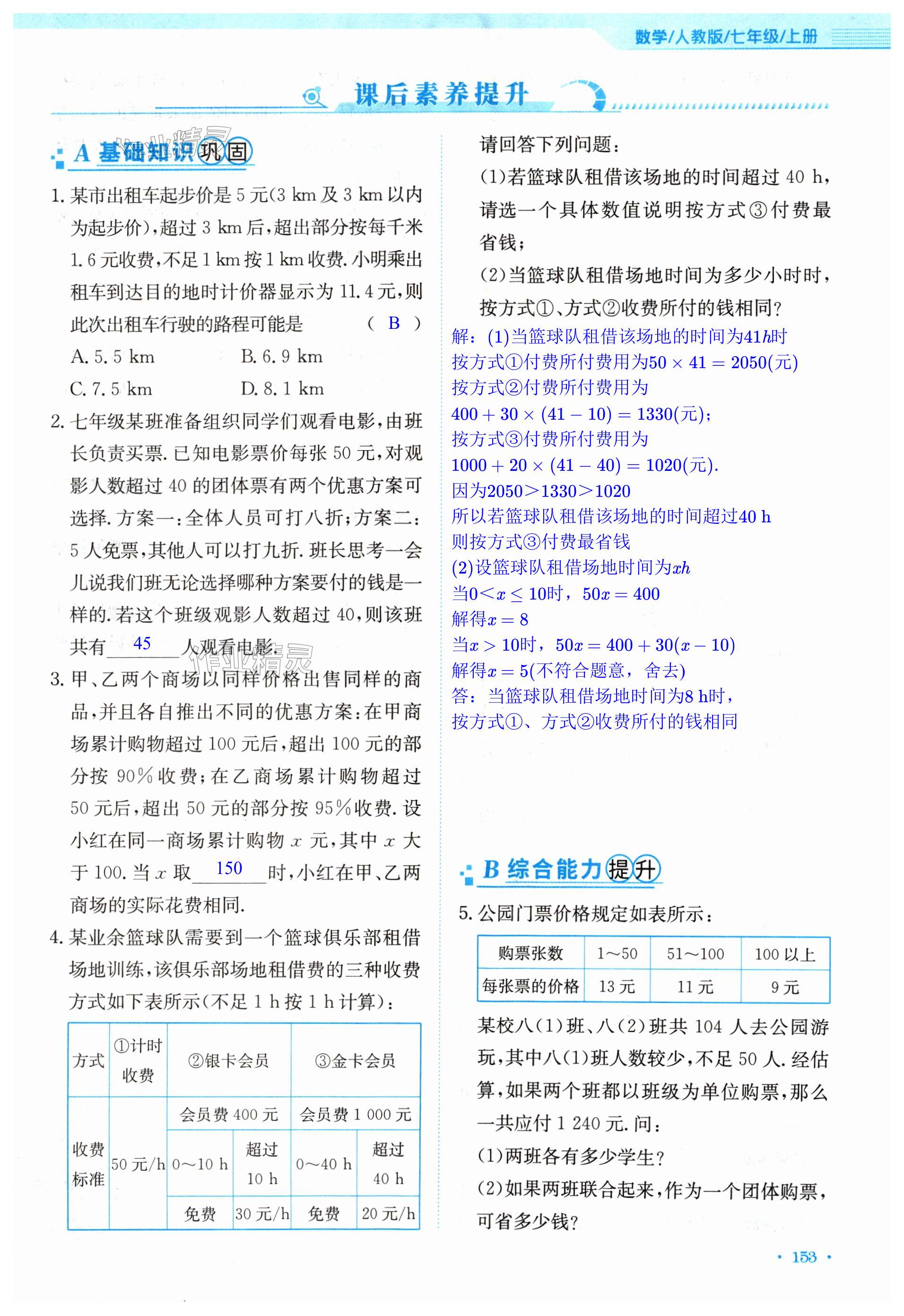 《2024年新编基础训练七年级数学上册人教版》