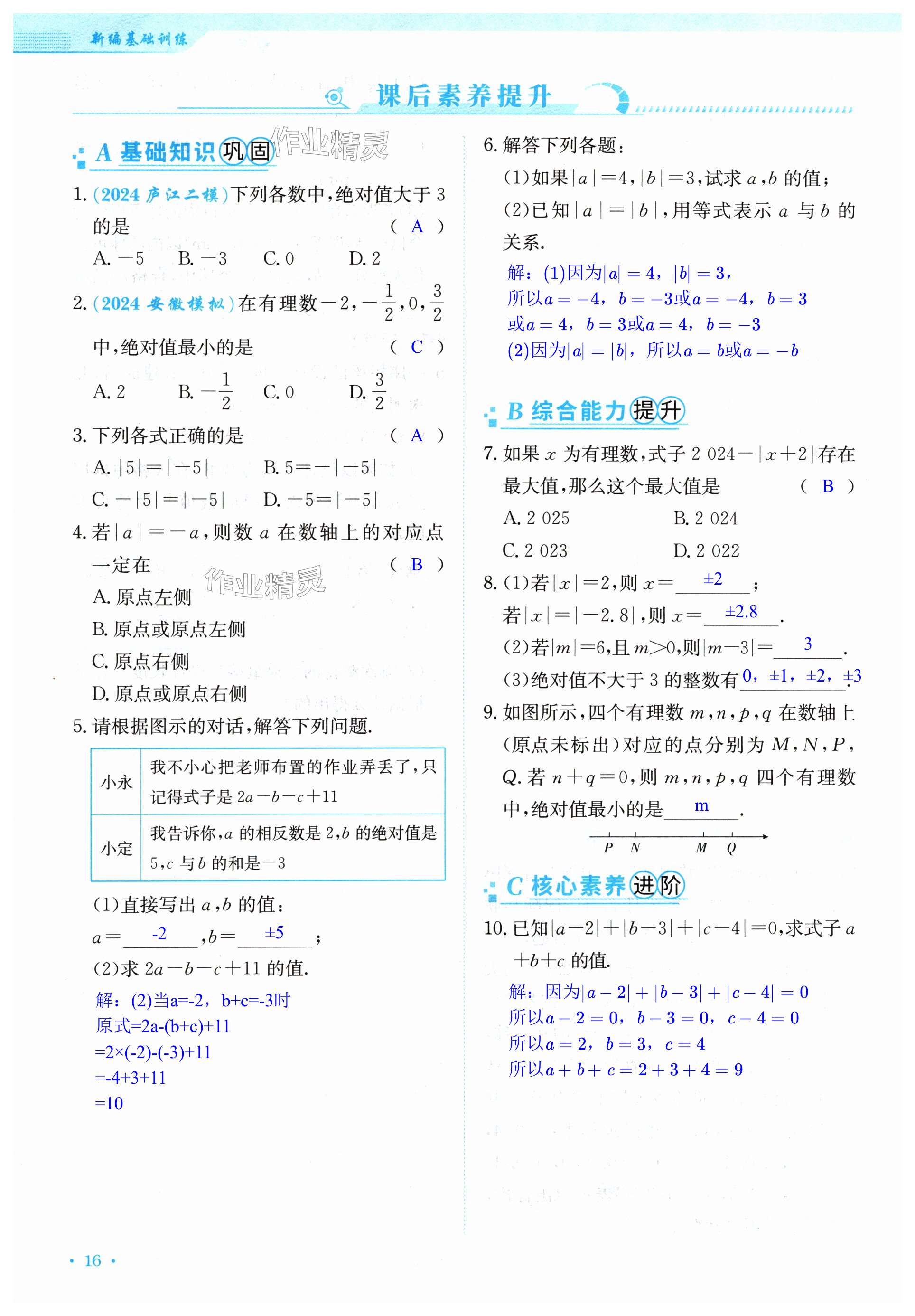 注:目前有些书本章节名称可能整理的还不是很完善,但都是按照顺序排列的,请同学们按照顺序仔细查找。练习册 2024年新编基础训练七年级数学上册人教版 答案主要是用来给同学们做完题方便对答案用的,请勿直接抄袭。