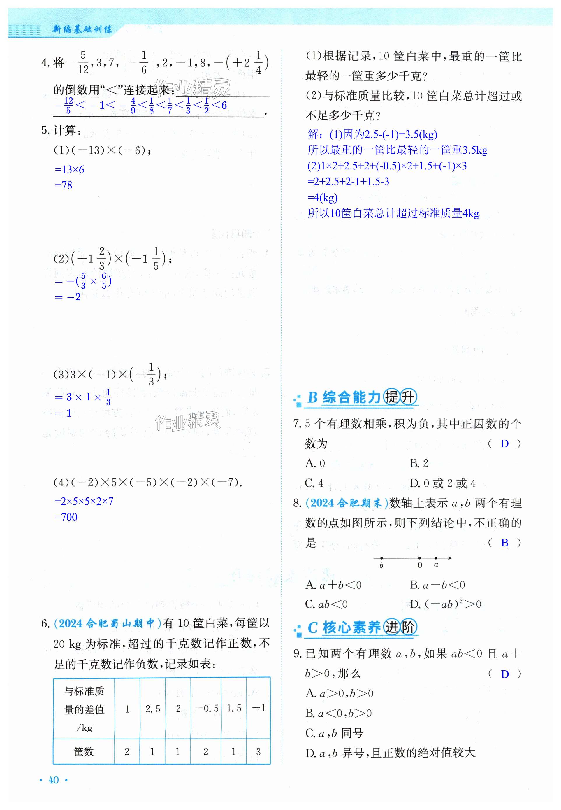 注:目前有些书本章节名称可能整理的还不是很完善,但都是按照顺序排列的,请同学们按照顺序仔细查找。练习册 2024年新编基础训练七年级数学上册人教版 答案主要是用来给同学们做完题方便对答案用的,请勿直接抄袭。