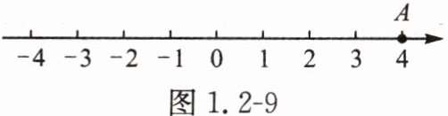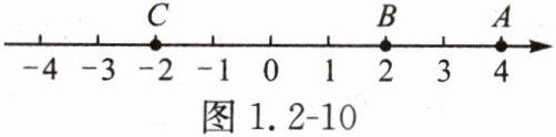 例3 如图1.2 - 9,数轴上的点A表示4,把点A向左移动2个单位长度,得到点B,点C与点B表示的数互为相反数,求B,C两点表示的数,并把B,C两点在数轴上标出来。