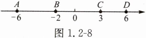 例1 如图1.2 - 8,A,B,C,D四点中,表示互为相反数的两个点是( )
