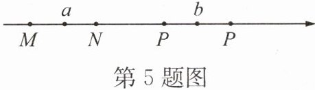 5. 如图,$M$,$N$,$P$,$R$分别是数轴上四个整数所对应的点,其中有一点是原点,并且$MN = NP = PR = 1$。数$a对应的点在M与N$之间,数$b对应的点P与R$之间,若$|a|+|b| = 3$,则原点是( )