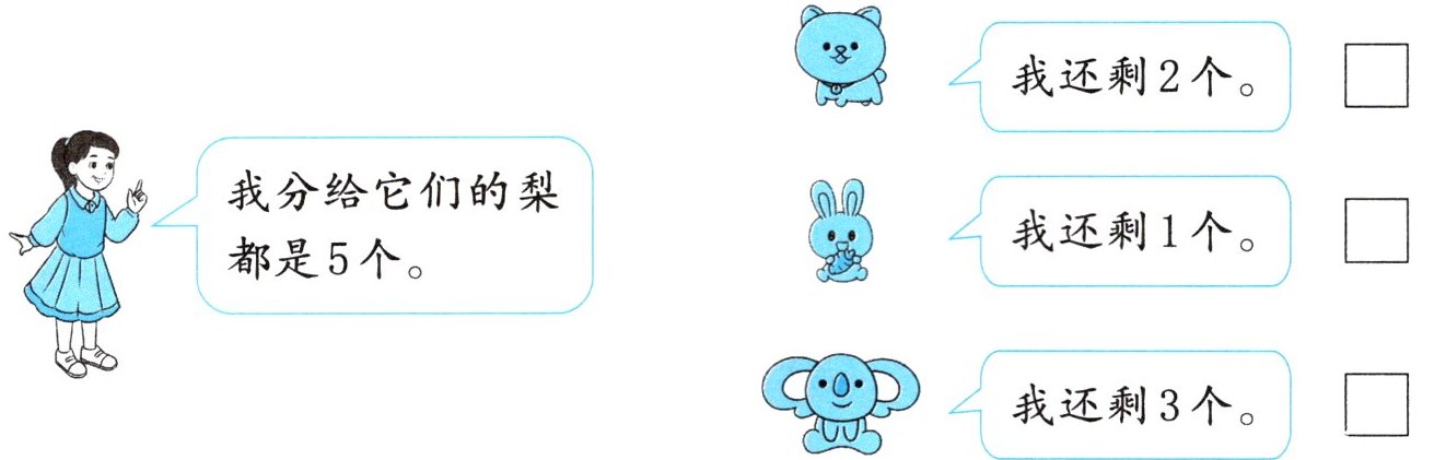 我分给它们的梨都是5个。