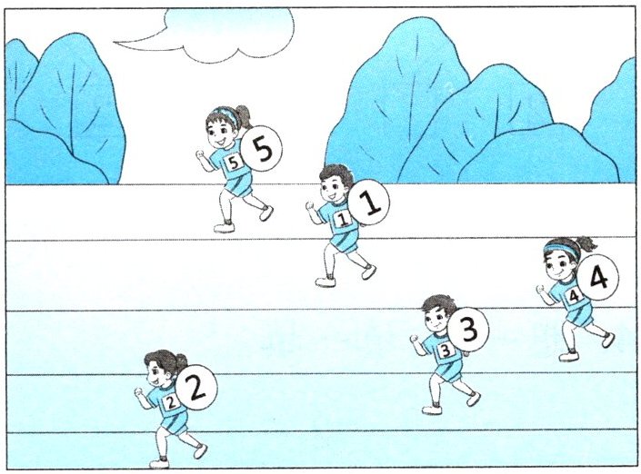 3. 如右图,运动会上,一共有5个人参加跑步比赛。