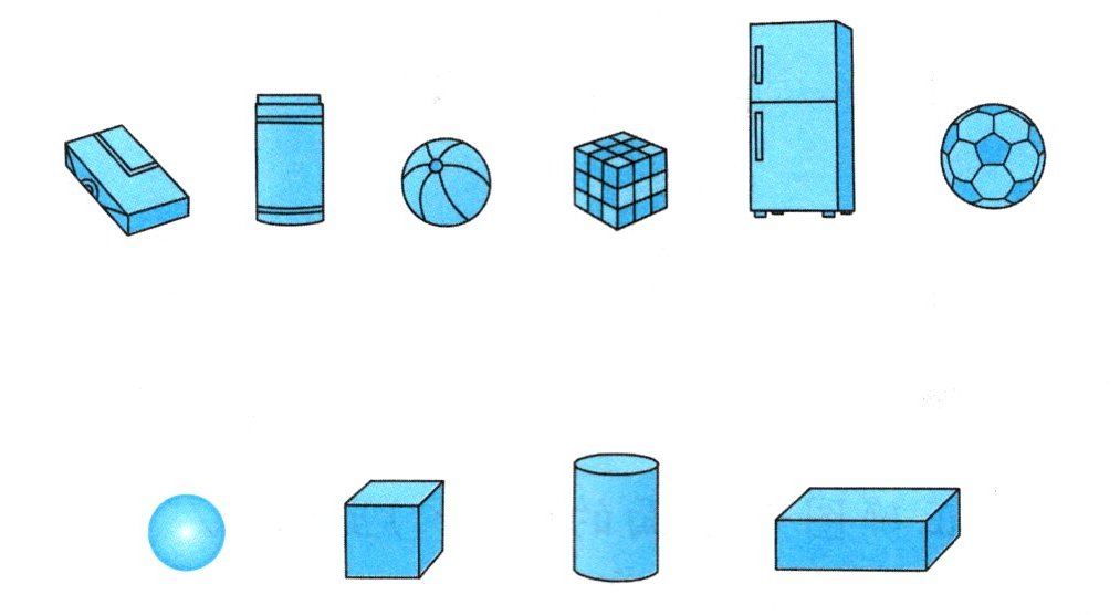 1. 下面物品是什么形状?连一连。
