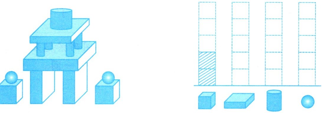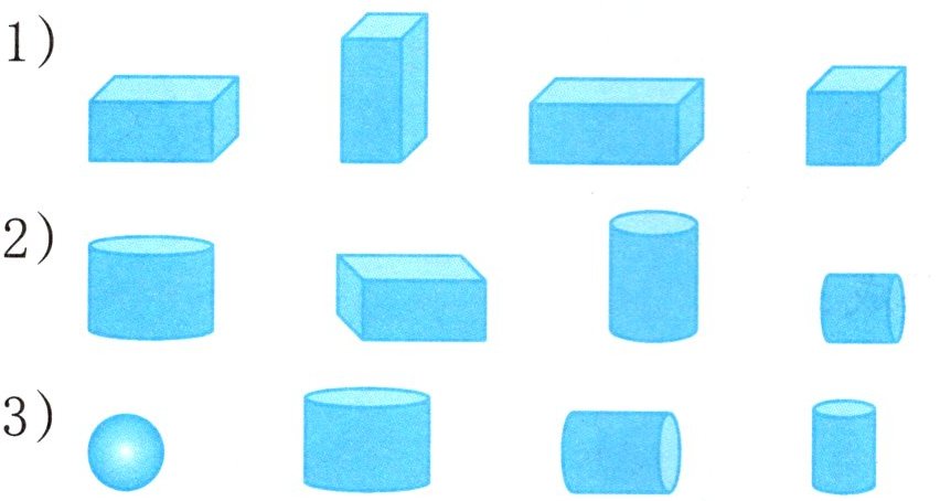 3. 下图中有哪些图形?请你先数一数,再照样子涂一涂。