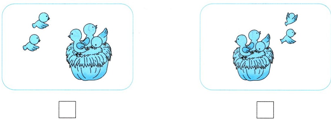 4. 下面哪幅图可以用 5 - 2 = 3 表示?在$□$里画“ √”。