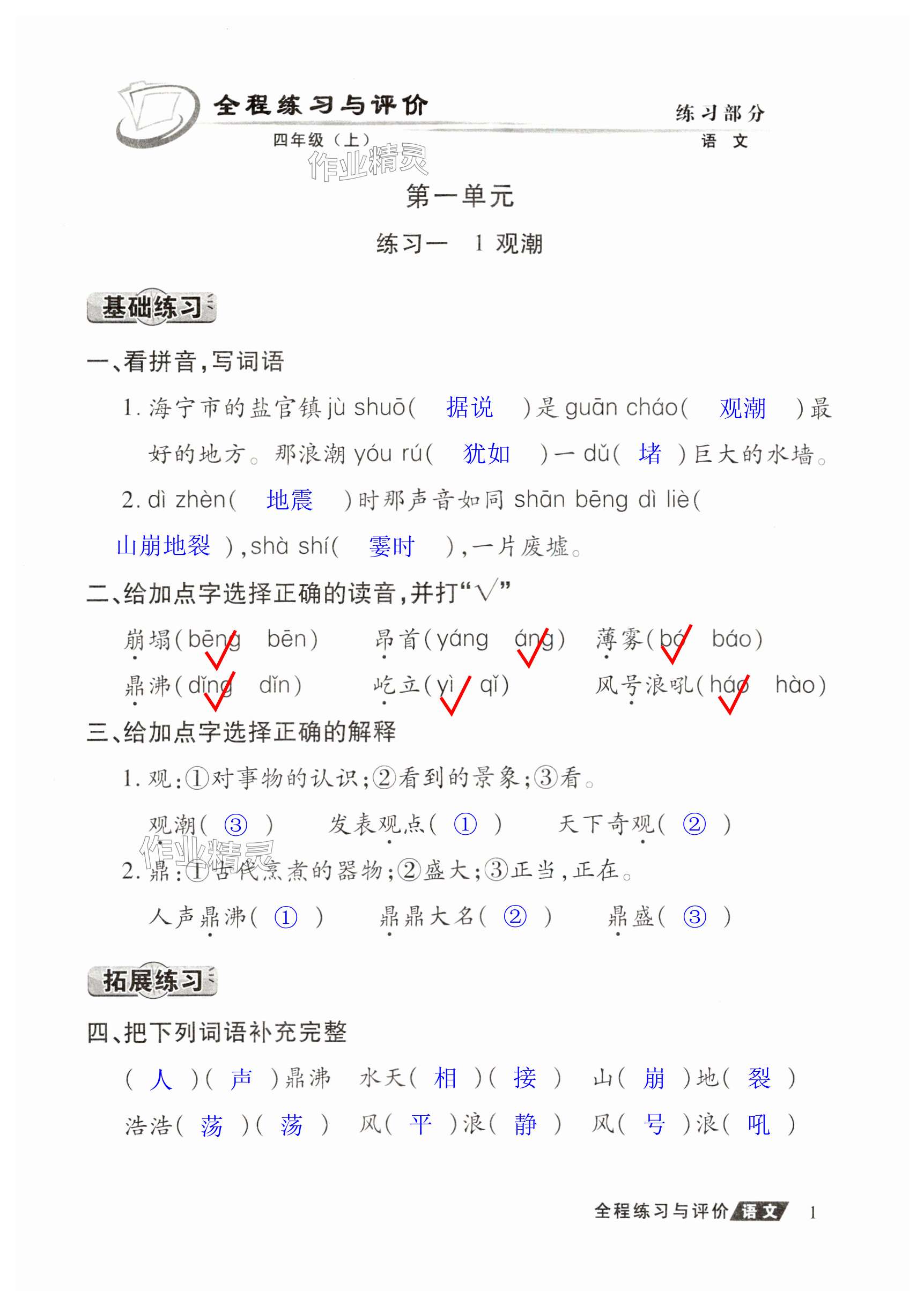 注:目前有些书本章节名称可能整理的还不是很完善,但都是按照顺序排列的,请同学们按照顺序仔细查找。练习册 2024年全程练习与评价四年级语文上册人教版 答案主要是用来给同学们做完题方便对答案用的,请勿直接抄袭。