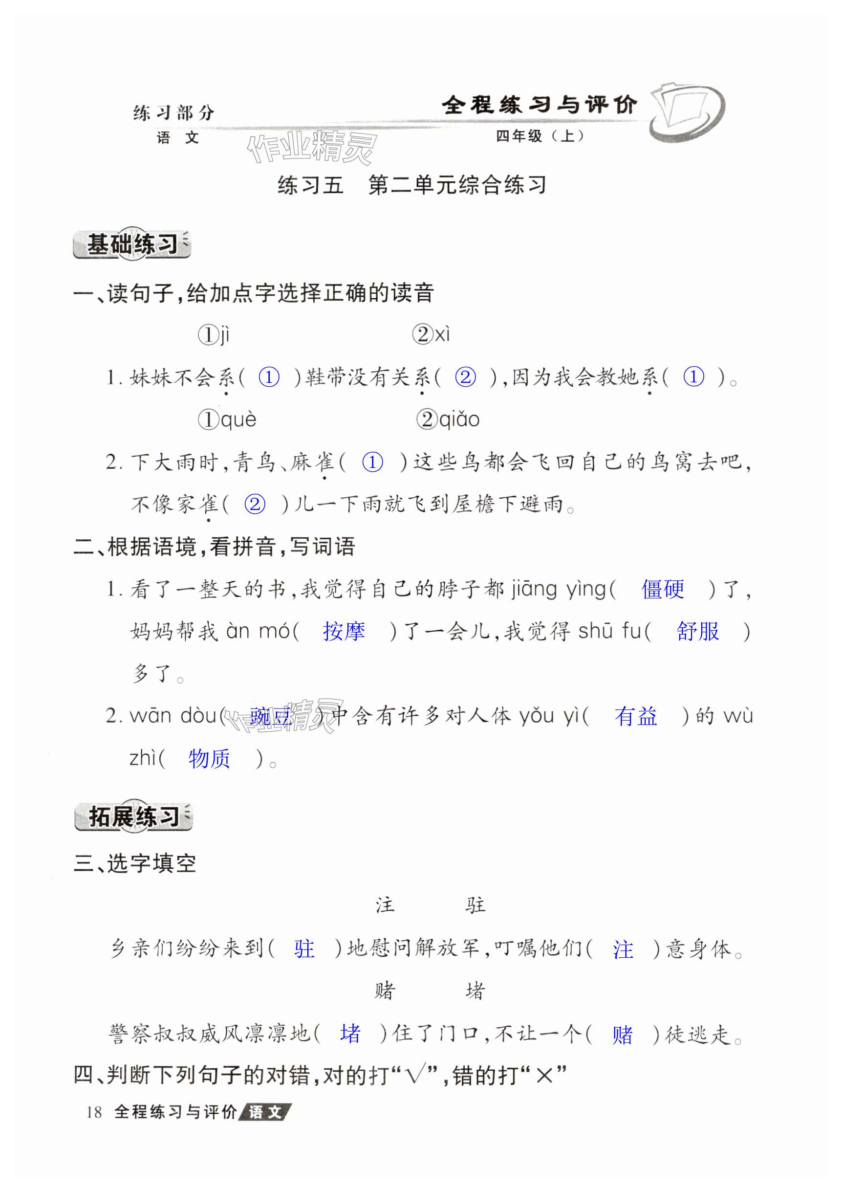 注:目前有些书本章节名称可能整理的还不是很完善,但都是按照顺序排列的,请同学们按照顺序仔细查找。练习册 2024年全程练习与评价四年级语文上册人教版 答案主要是用来给同学们做完题方便对答案用的,请勿直接抄袭。