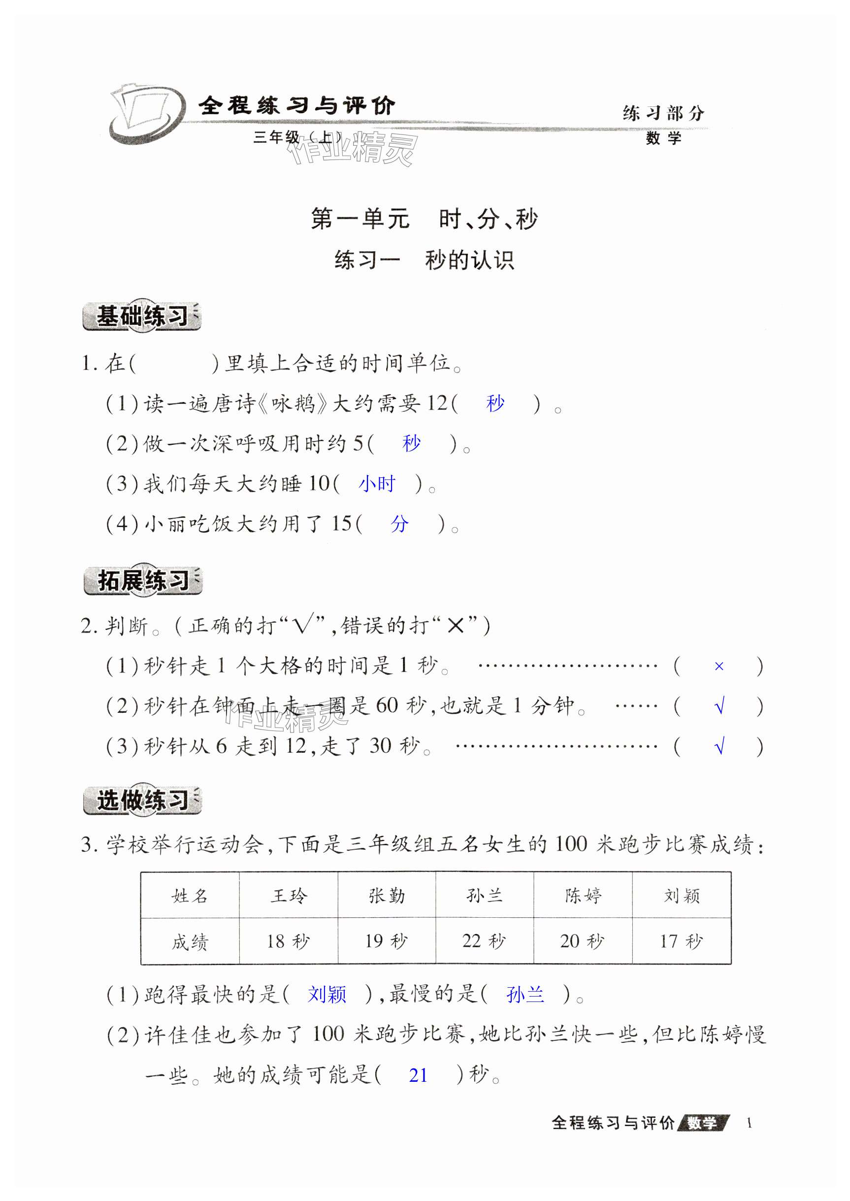 注:目前有些书本章节名称可能整理的还不是很完善,但都是按照顺序排列的,请同学们按照顺序仔细查找。练习册 2024年全程练习与评价三年级数学上册人教版 答案主要是用来给同学们做完题方便对答案用的,请勿直接抄袭。