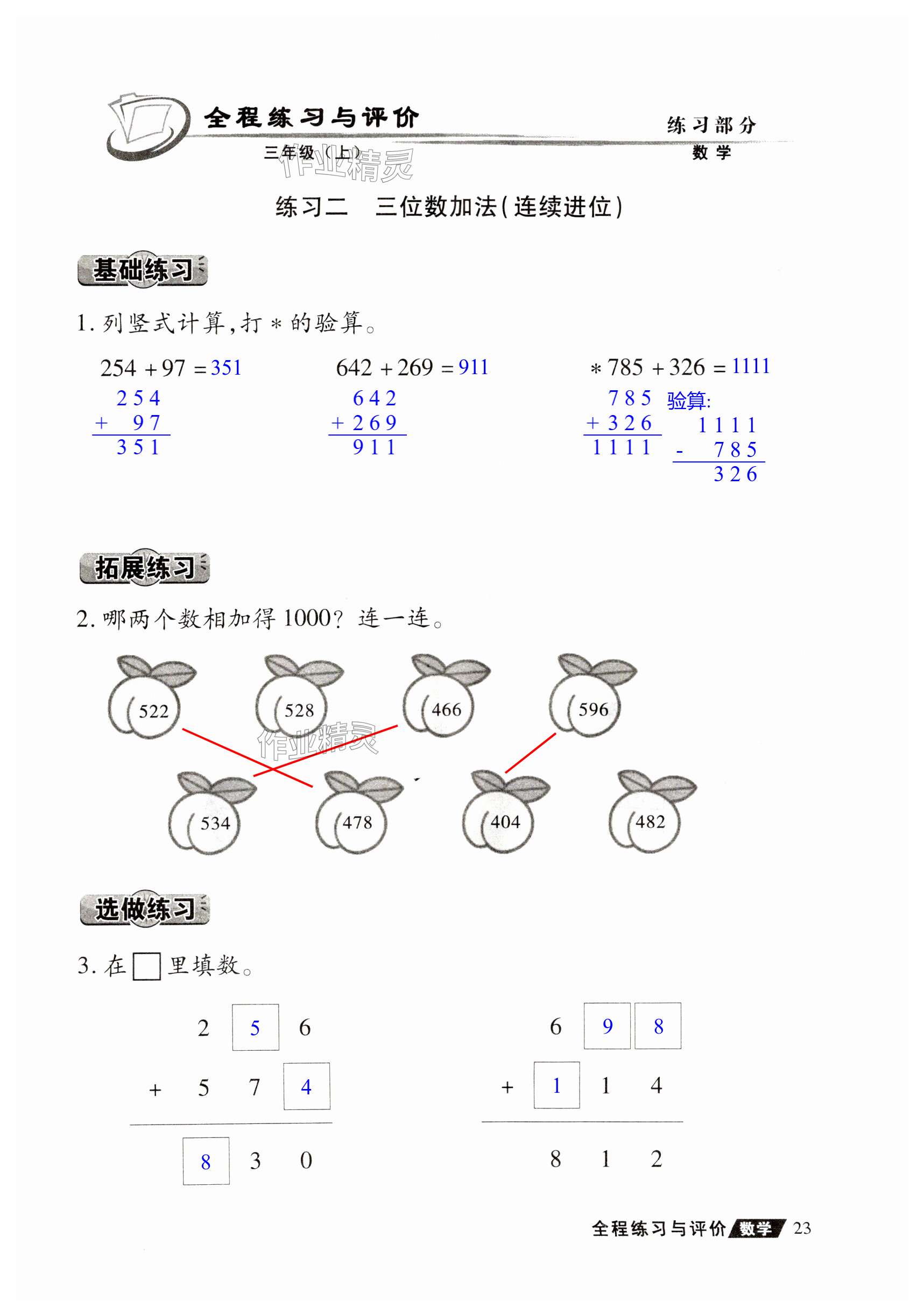 注:目前有些书本章节名称可能整理的还不是很完善,但都是按照顺序排列的,请同学们按照顺序仔细查找。练习册 2024年全程练习与评价三年级数学上册人教版 答案主要是用来给同学们做完题方便对答案用的,请勿直接抄袭。