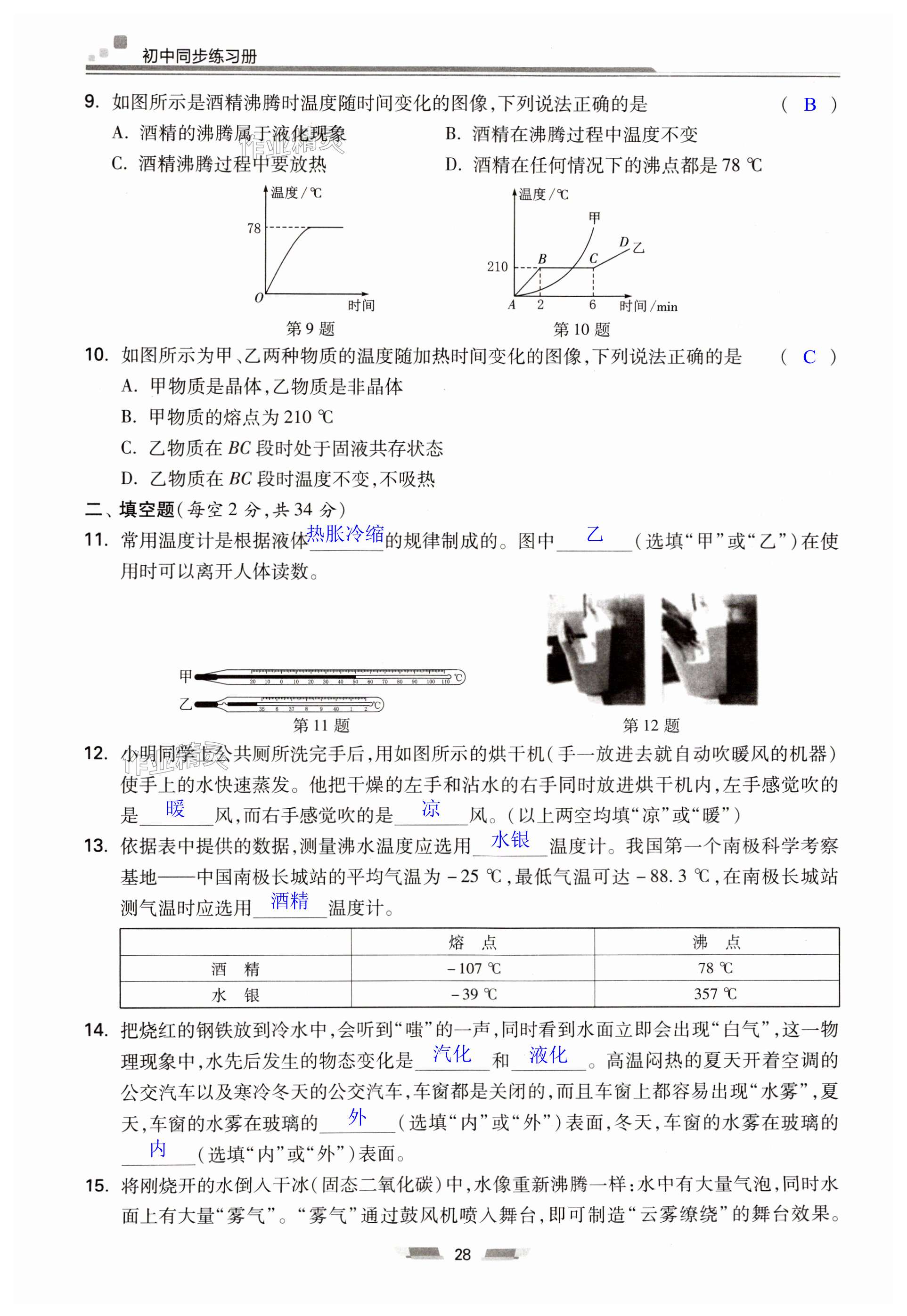注:目前有些书本章节名称可能整理的还不是很完善,但都是按照顺序排列的,请同学们按照顺序仔细查找。练习册 2024年同步练习册湖南少年儿童出版社九年级物理全一册沪科版 答案主要是用来给同学们做完题方便对答案用的,请勿直接抄袭。